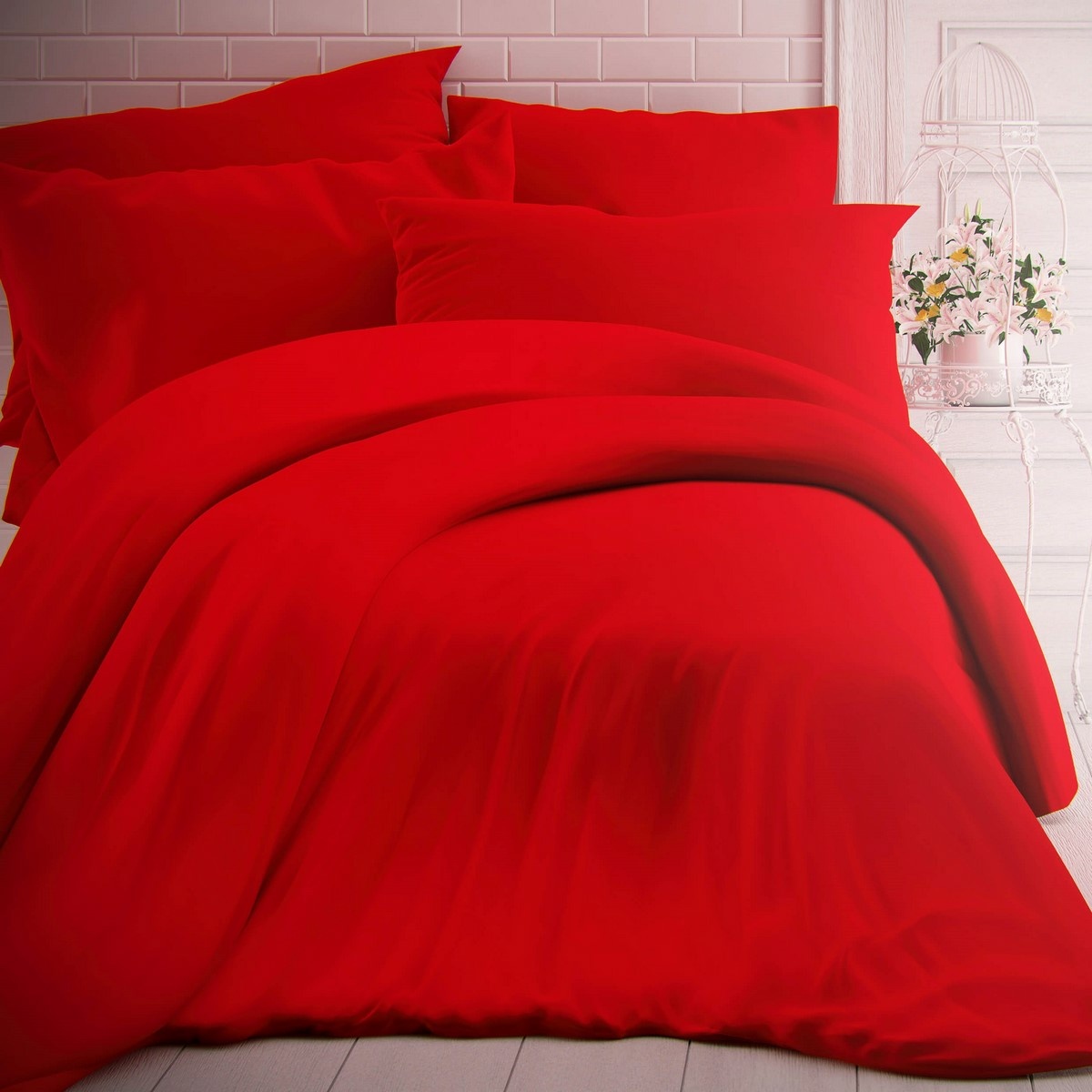 Klasické bavlnené obliečky v červenej farbe rozžiaria vaše lôžko i celkový vzhľad spálne. Obliečky sú vyrobené z veľmi jemnej tkaniny s vysokou hustotou jemných priadzí, vynikajú vysokou stálofarebnosťou a sú príjemné na dotyk. Záruka maximálneho pohodlia pri odpočinku!