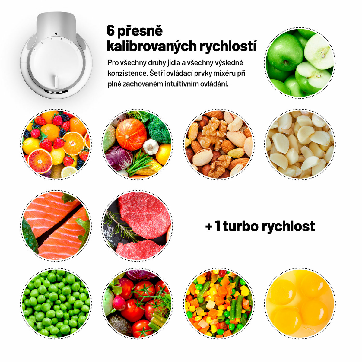bohaté príslušenstvo – súčasťou balenia je niekoľko mixovacích nádob a nástavcov, vrátane nádoby na sekanie, šľahacie metly alebo špeciálneho nástavce na prípravu zemiakovej kaše