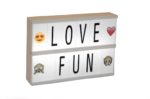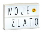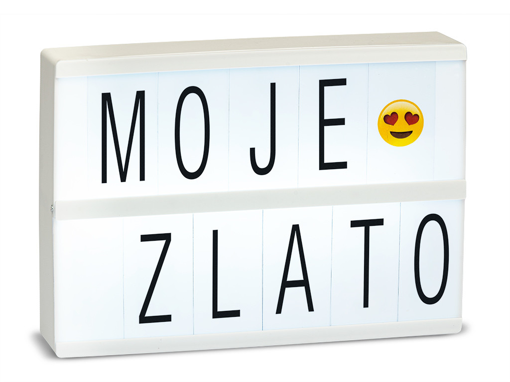 LED svetelný panel je do každého interiéru skvelý a zaujímavý doplnok. Vedeli ste, že za vás dokáže oznámiť takmer čokoľvek? A to celkom originálne. Stačí vybrať vhodné písmená a jednoducho ich zasunúť do drážok prednej strany boxu. Rozsvietením panelu tak váš odkaz, želanie alebo motto dokonale vynikne medzi ostatnými dekoráciami v miestnosti. Panel je podsvietený 8 ks LED diód. Je flexibilný a vďaka napájaniu na 4 x batérie AA možno postaviť kdekoľvek. Trebárs aj do temnejšej záhrady. Sľubujeme, že úspech bude zaručený. Súčasťou je sada 100 ks písmen a 13 ks symbolov. Batérie nie sú súčasťou balenia.