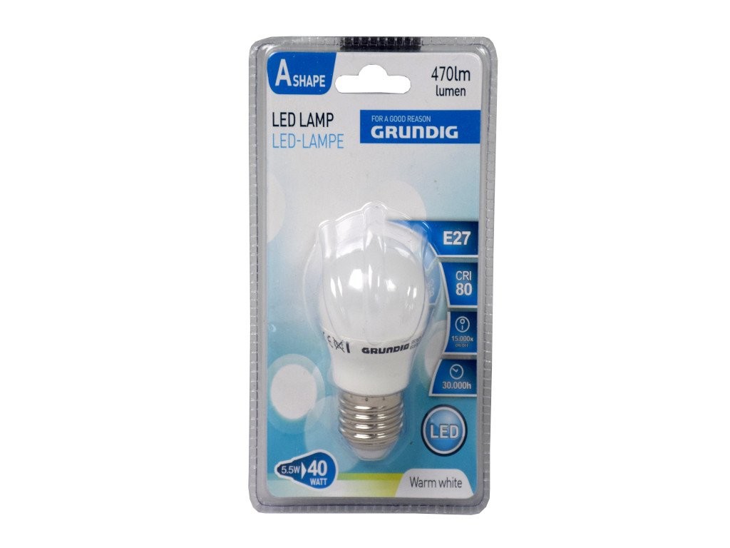 LED žiarovka s vyžarovacím uhlom 155 ° a svetelným tokom 470 lúmenov. S výkonom 5,5 W je náhradou za starú žiarovku 40 W. Energetická účinnosť žiarovky je A +.