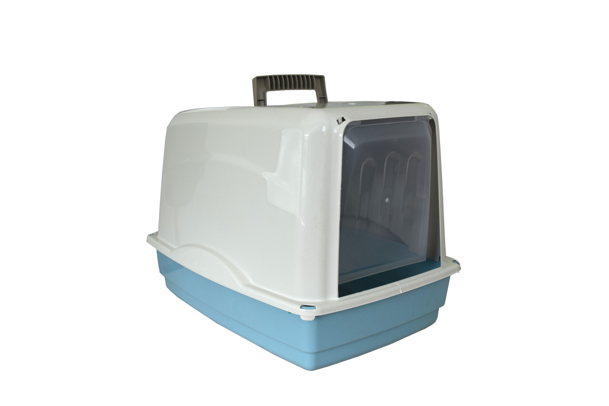 Uzavretú toaletu majú mačičky v obľube pre potrebné súkromie. Vďaka záklopným uzáverom je vrchná časť odnímateľná a toaletu možno ľahko vyčistiť. Transparentnú klapku mačky veľmi ľahko samé obsluhujú. Úchytka pre jednoduché prenášanie.Materiál: odolný plast. Rozmery: 54 x 39 x 39 cm.