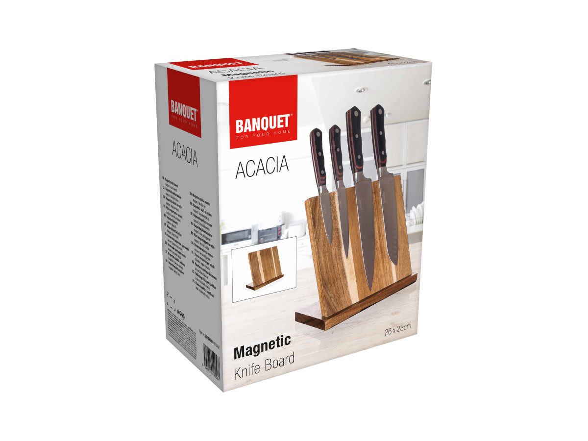 Mať prehľadne uložené nože je jednoduchšie, než by ste čakali. Praktickým pomocníkom je stojan s magnetickou doskou ACACIA. Povrch dosky je z akáciového dreva, ktoré je šetrné k ostriu nožov. Pevné uchytenie nožov zaisťuje silný magnet vnútri dosky. Rozmery: 26 x 23 cm.Praktické a prehľadné usporiadanieStojan s magnetickou doskouKvalitné akáciové drevo