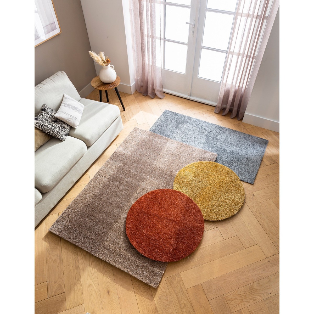 Pre nadčasový vzhľad interiéru zvoľte jemný pohodlný koberec v módnych farbách kari a terakota. Jemný a pohodlný. V 4 obdĺžnikových rozmeroch a 2 okrúhlych. Možno prať v práčke a sušiť v sušičke. Jednoduchá údržba.  100 % polypropylén.