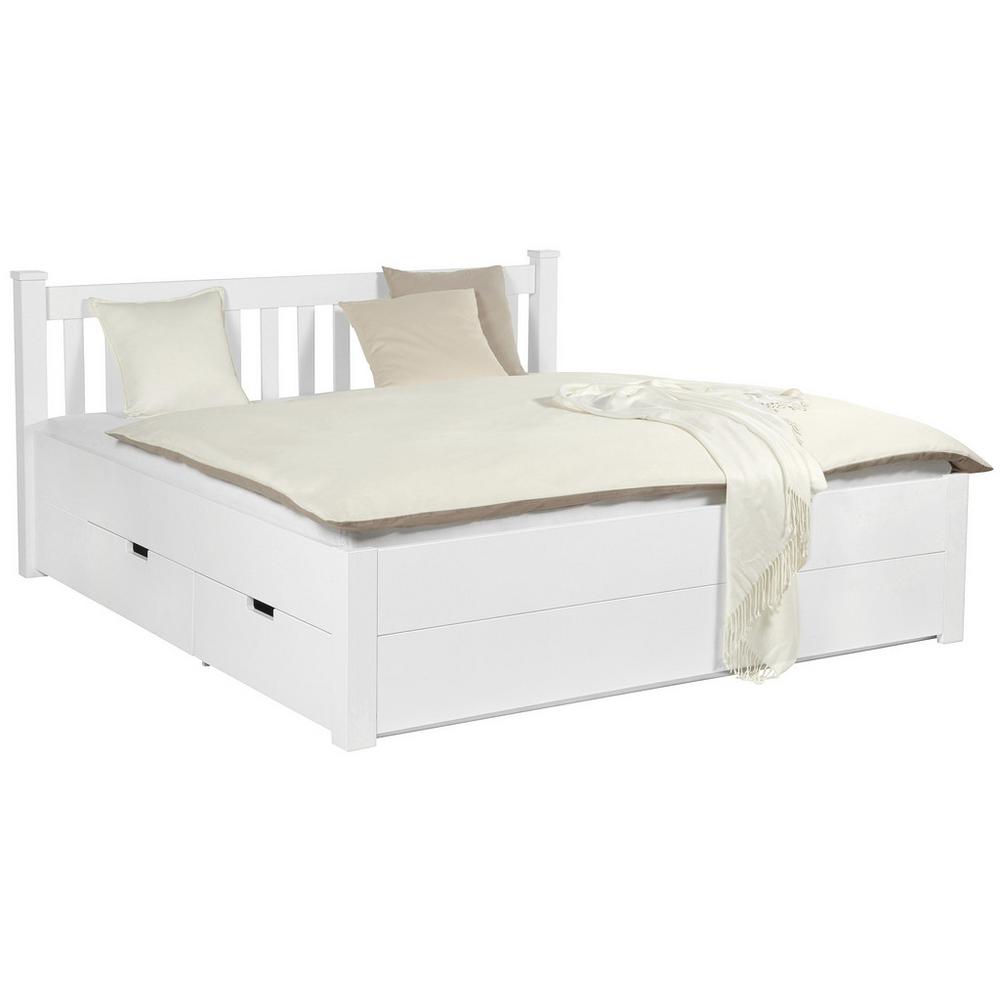 Táto posteľ bielej farby v romantickom vidieckom štýle sa stane stredobodom každej útulnej izby. S plochou lôžka cca 160 x 200 cm (Š/H) má korpus z vysoko kvalitnej lakovanej MDF bukovej dosky. Záhlavie je vyrobené z masívneho dreva a taktiež je lakované do bielej farby. Posteľ vyžaruje ľahkosť a čarovný život na vidieku. Štyri zásuvky, ktoré dobre slúžia ako úložný priestor, sú krásne a zároveň praktické. Celkovo má posteľ výšku asi 92 cm, výška lôžka je