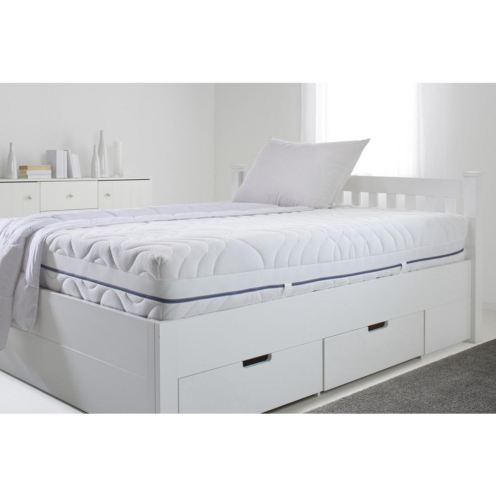 Matrac s plochou na ležanie približne 80 x 200 cm je potiahnutý kvalitnou dvojitou látkou (79 % polyester a 21 % bavlna). Túto bielizeň možno prať v práčke pri teplote do 60 °C a je vhodná aj pre osoby s alergiou na domáci prach. Vďaka 7-zónovému komfortnému penovému jadru poskytnete svojmu chrbtu príjemné noci, pretože výrobok je navrhnutý tak, aby vám poskytol najlepší komfort spánku so 7 spacími zónami. Obzvlášť praktické: matrac môžete otočiť a určiť tak stupeň tvrdosti, či už H3 alebo H4, toto rozhodnutie je na vás. Matrac je priedušný a zabezpečuje optimálne vetranie, takže pokojné noci sú zaručené. Objavte ďalšie matrace s rozmermi 80×200 a penové matrace s rozmermi 80×200!