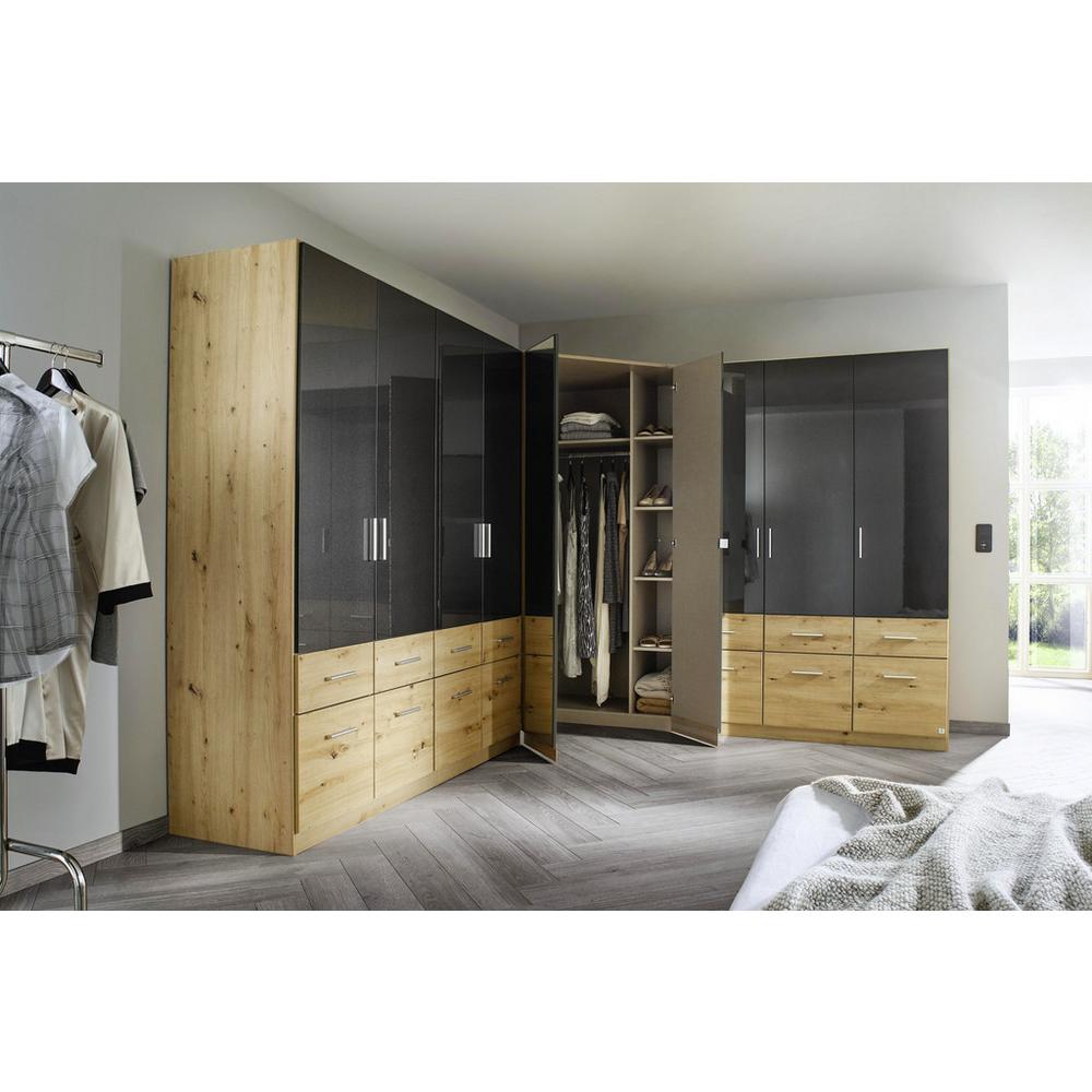 S hornou nadstavcovou skrinkou CELLE EXTRA rozšírite svoju rovnomennú šatníkovú skriňu o ďalší úložný priestor, a tiež efektívne vyplníte miesto medzi skriňou a stropom. Ak chcete rozšíriť svoju rohovú skriňu CELLE EXTRA do maxi výšky, táto horná skrinka je tou správnou voľbou! Nábytok má rozmery cca 117 x 39 x 117 cm (Š x V x H). Horná časť s dvomi dvierkami je farebne aj rozmerovo ladená k rohovej dvojdverovej skrini CELLE EXTRA, má tiež dvierka v efektnom sivom dekore vo vysokom lesku, korpus je vyrobený vo vzhľade dubu. Dvierka sa otvárajú pomocou úchytiek vo farbe hliníka. A keďže model má certifikáty Blue Angel, Golden M a Made in Germany, na jeho kvalitu sa môžete spoľahnúť.