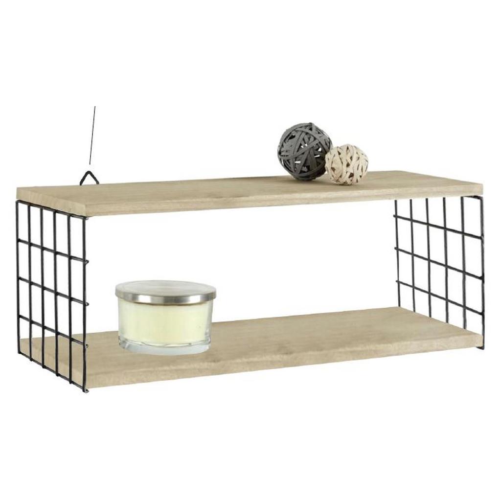 Táto nástenná polica v prírodnej a čiernej farbe sa perfektne hodí do rôznych miestností a poskytuje praktický úložný priestor, ktorý je možné ľubovoľne zaplniť potrebnými predmetmi alebo dekoráciami. Rozmery tejto police sú cca 60 x 22 x 20 cm (Š x V x H). Je vyrobená z čierneho železného rámu v mriežkovanom dizajne a dvoch políc z masívu dreva Paulownia. Jej montáž na stenu je navyše veľmi jednoduchá. Krásna nástenná polica, ktorá sa hodí do moderných aj klasických príbytkov, je skvelým riešením prázdneho miesta na stene a optimálne využíva doplnkový úložný priestor.