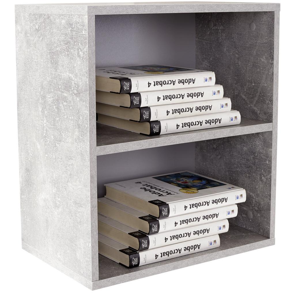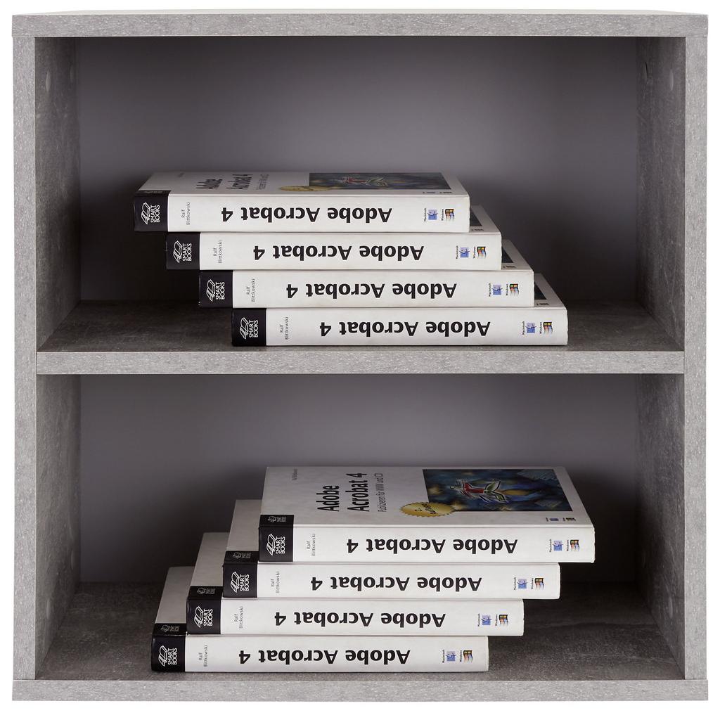 Kvadratický nástenný regál vo farbách betónu je všestranne využiteľný v ktorejkoľvek miestnosti. Regál s rozmermi 50 x 50 x 26 cm (š/v/h) pozostáva z 2 otvorených priečinkov, do ktorých si môžete poodkladať knihy, dekoračné predmety, CD a mnoho ďalšieho. Závesný regál vám dá možnosť vyzdobiť si váš domov celkom podľa vašich predstáv!