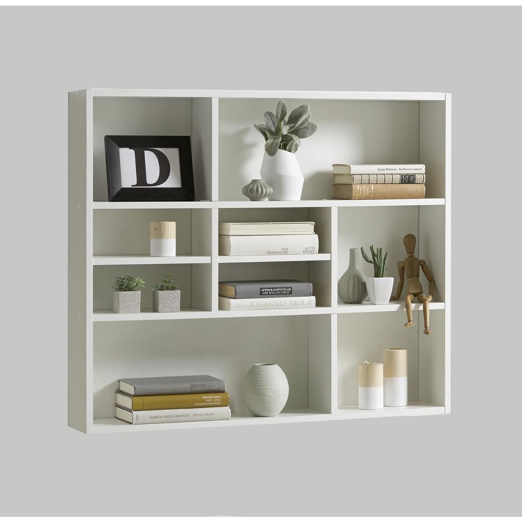 Tento výrobok je k dispozícii IBA ONLINE. Flexibilný nástenný regál MIKA sa hodí do rôznych obytných priestorov a je obzvlášť atraktívny vďaka svojmu trendy nepravidelnému rozdeleniu políc. Biela regálová polica s rozmermi 90 x 78,5 x 16 cm (Š x V x H) je vyrobená z MDF materiálu a vďaka svojmu melamínovému povrchu je odolná voči poškriabaniu a ľahko sa čistí. 9 otvorených priehradiek umožňuje individuálne možnosti usporiadania: knihy, fotografie, rastliny alebo ozdobné prvky – tento regál ponúkne úložný priestor pre vaše obľúbené kúsky čo najvýhodnejšie. Najdôležitejšie informácie: