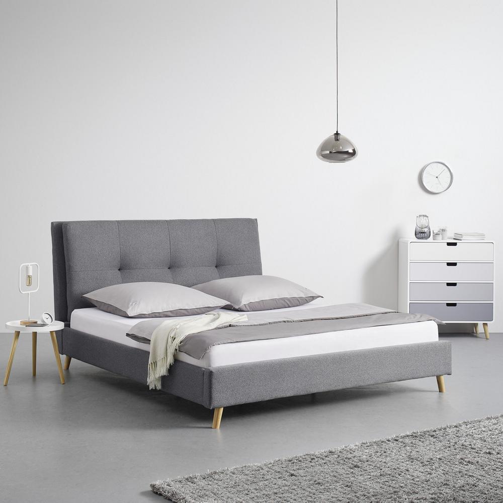 Tento výrobok je k dispozícii IBA ONLINE. Čalúnená posteľ CAMILLA sa stane trendovým lákadlom vo vašej spálni! Už na prvý pohľad zaujme svojím škandinávskym vzhľadom s jasnými líniami a vysokým, ozdobným čelom, ktoré je nielen čalúnené a mäkké, ale je možné ho aj polohovať, čo ocení nejeden čitateľ dobrých knižiek alebo milovník filmových večerov. Poťah z tkanej látky bol vyrobený v sivej farbe a harmonicky ho dopĺňajú okrúhle nohy hnedej farby z pravého dreva. Posteľ CAMILLA sa naviac dodáva s pevným, 15 zónovým lamelovým roštom s 42 lamelami, čo zaisťuje optimálny komfort ležania. S rozmermi približne 188 x 110 x 232 cm (Š / V / H), výškou ležania cca 36 cm, plochou lôžka cca 180 x 200 cm a nosnosťou do 300 kg presvedčí vizuálne aj funkčne. Vychutnajte si s touto skvelou posteľou pekné prostredie a pokojné noci! Táto posteľ patrí do sekcie postele s čelom,