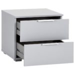 Elegantný úložný priestor s dekorom v hodvábnej sivej farbe: Atraktívna skrinka ALABAMA kombinuje moderný dizajn a funkčnosť s perfektným farebným odtieňom! S rozmermi približne 47 x 43 x 42 cm (Š/V/H) je nielen očarujúcim doplnkom vašej postele, ale ponúka aj cenné možnosti úložného priestoru. Vaše obľúbené čítanie, vreckovky a ďalšie veci môžete uložiť do dvoch zásuviek, ktoré sú vybavené pohodlným systémom mäkkého a tichého zatvárania. Svoje obľúbené dekorácie, obrázky, budík a lampu môžete umiestniť na hornej ploche, a vniesť tak do miestnosti svoj osobný vkus. Ako súčasť série do spální ALABAMA zaujme tento nočný stolík jednoduchými priamymi líniami, ktoré vyžarujú nadčasovú eleganciu. Dekor svetlosivej farby vyžaruje príťažlivú atmosféru, celkový dizajn dotvárajú lištové úchytky a hranaté nožičky v hliníkovej farbe. Certifikačné značky kvality „Blue Angel“, „Golden M“ a „Alliance for Quality“ zaručujú testovaný nábytok, ktorý spĺňa najvyššie požiadavky z hľadiska kvality, bezpečnosti, ochrany životného prostredia a zdravia. Vysoko kvalitný, funkčný a dekoratívny pútač očí, to predstavuje nočný stolík ALABAMA. Tip: Tento náb