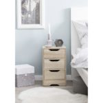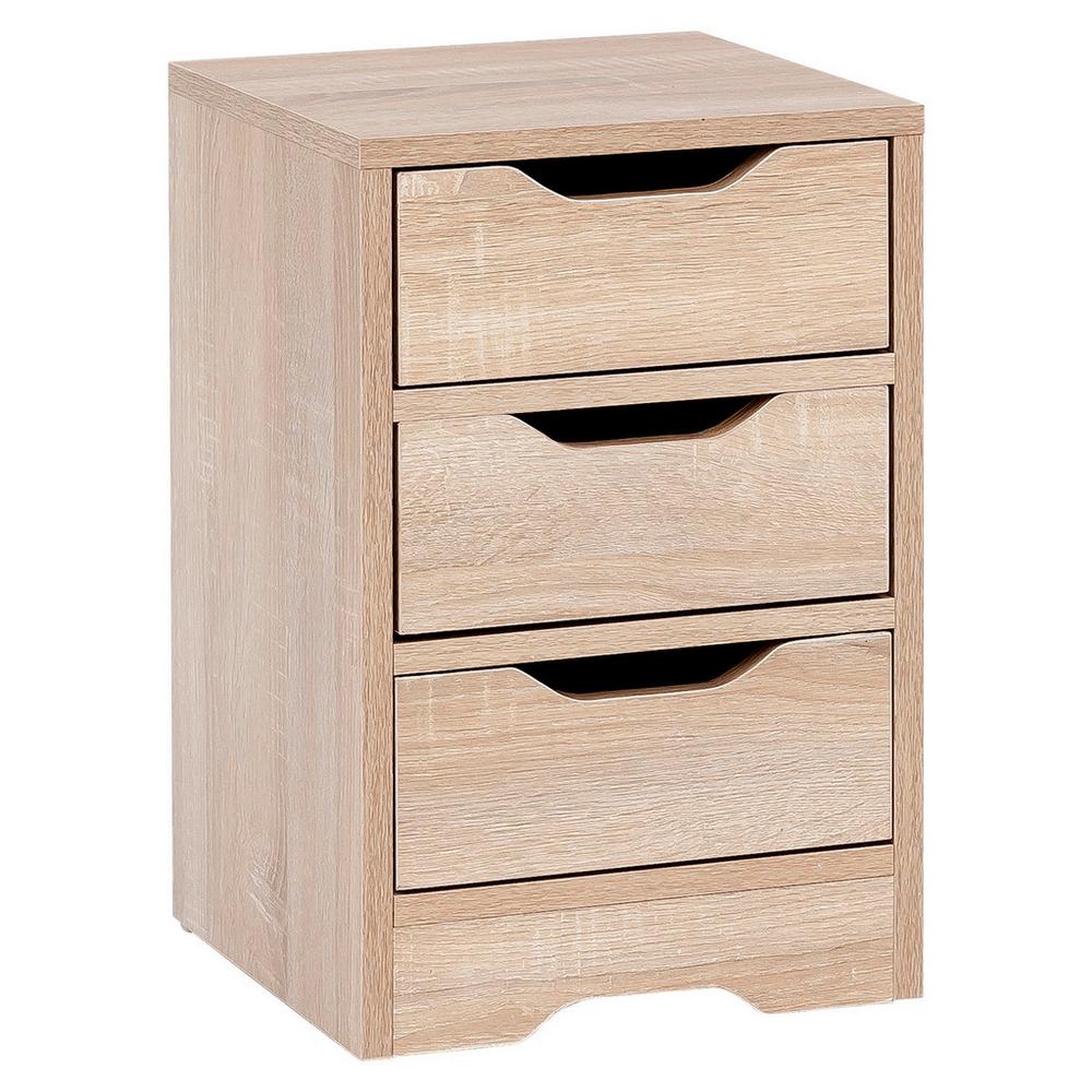 Tento výrobok je k dispozícii IBA ONLINE. Dodanie je zadarmo. Tento malý nočný stolík, s rozmermi približne 31 x 49 x 31 cm (Š/V/H) je vyrobený s prírodným vzhľadom, v drevenom dekore v odtieni dub sonoma. Ponúka úložný priestor na hornej ploche a v troch zásuvkách s otvormi na uchopenie, takže budete mať svoju rozčítanú knihu, telefón a lampu vždy poruke. Tento nočný stolík je možné skombinovať rovnako dobre s moderným spálňovým nábytkom, ako aj so zariadením vo vidieckom štýle! Objavte v našom internetovom obchode ďalšie nočné stolíky z kategórie