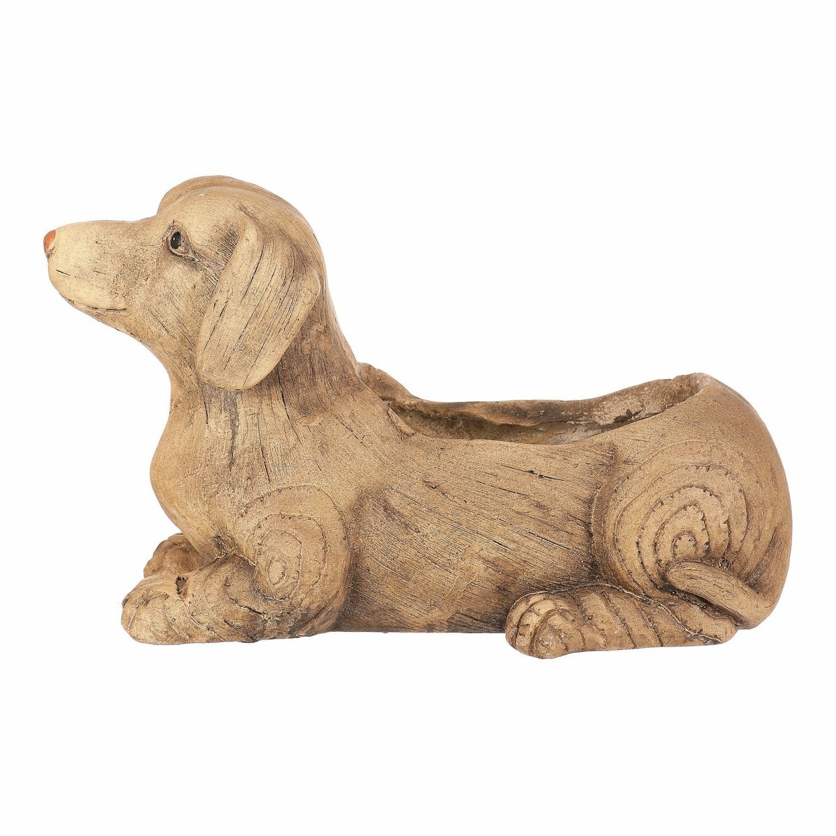 Obal na kvety z magnéziovej keramiky v podobe jazvečíka s imitáciou dreveného povrchu je ideálnou ozdobou na oživenie vašej záhrady, terasy i interiéru. Povrch je v jednofarebnom sivohnedom prevedení verne kopírujúci kresbu dreva. …