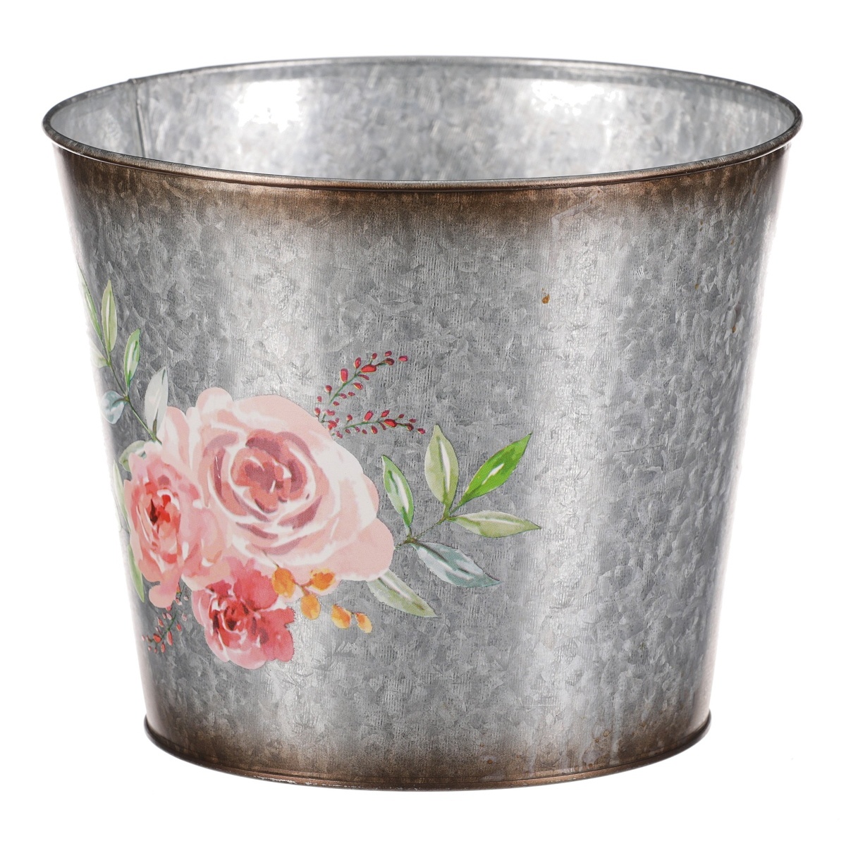Máte chuť vytvoriť si jedinečnú kvetinovú výzdobu vášho obľúbeného priestoru, ale dochádzajú vám nápady, v čom nechať vyniknúť krásukvetov? Skúste siahnuť po tejto jedinečnej dekorácii vo forme veľkého kovového obalu s dekorom ruží na boku, a budete nadšení. Vďaka svojmu unikátnemu prevedeniu sa stane očarujúcim doplnkom pre vaše kvety. Kombinácia krásnych rastlín zasadených do takto zdobenej a tvarovanej dekorácie spolu vytvorí jedinečnú kompozíciu. Prineste si do svojho domova prvok originality s týmto nevšedným kovovým obalom, ktorý očarí každého obdivovateľa rastlín a skvele oživí váš priestor.