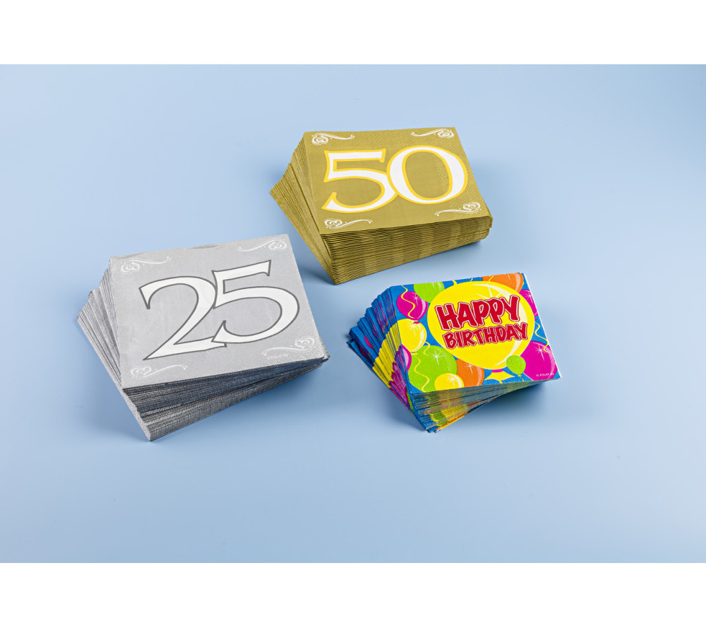 Pre všetky párty, ktoré oslavujú 25. narodeniny alebo 25. výročia sú obrúsky s dvadsaťpäťky skvelým doplnkom. Materiál: 3vrstvový papier. Počet v balení 20 ks. Veľkosť: 33 x 33 cm.Pre 25. narodeniny alebo výročieV balení 25 ks3vrstvové33 x 33 cm