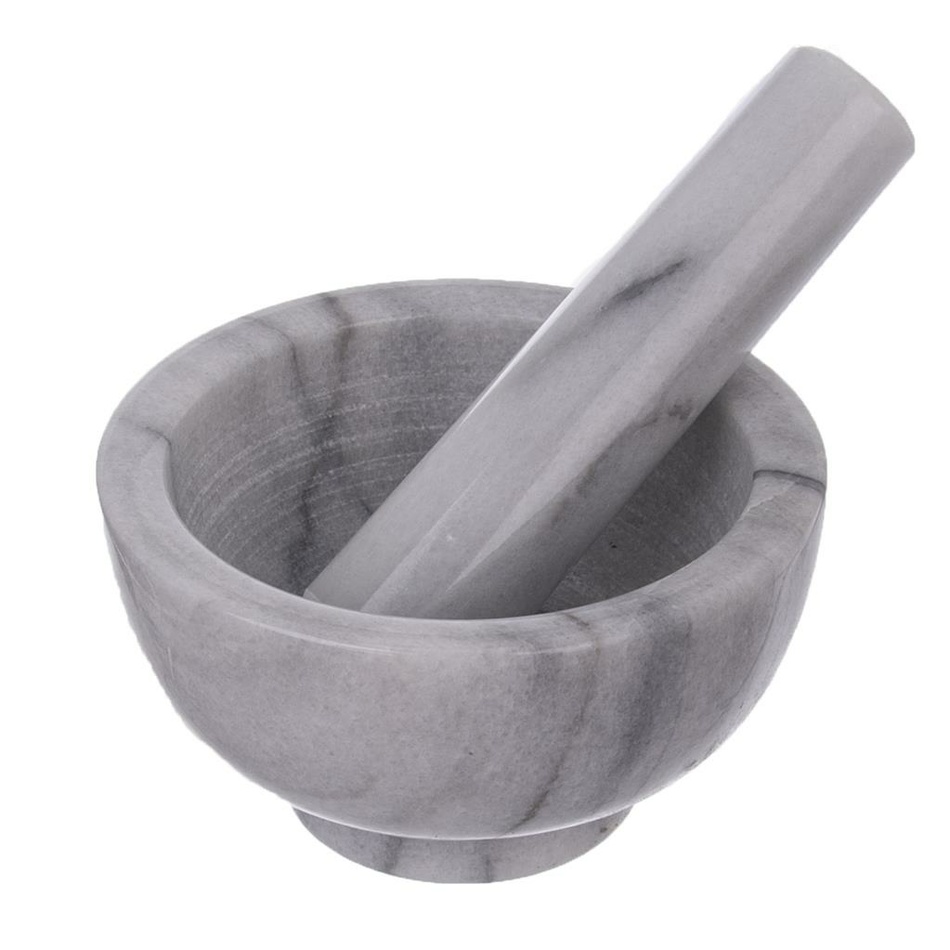 Štýlová sada mažiara a tĺčika je vyrobená z sivo-béžového mramoru a bude tak dizajnovým doplnkom kuchyne, ale aj skvelým pomocníkom pri varení a pečení. Na čerstvo zomleté korenie a bylinky totiž nič nemá! Dĺžka tĺčika 13 cm.