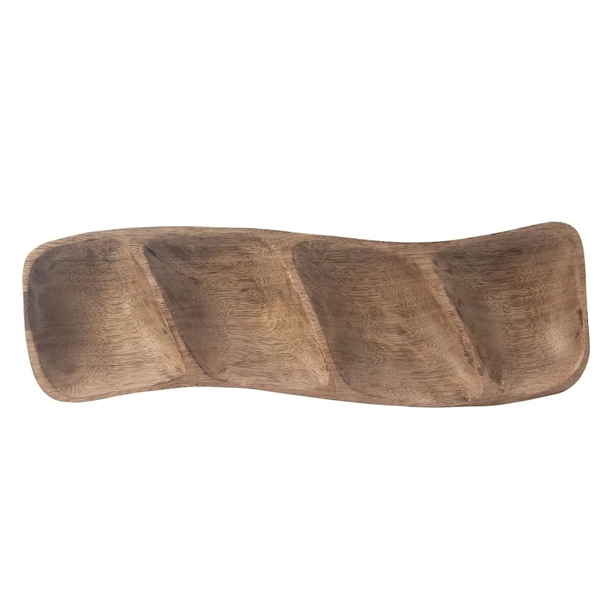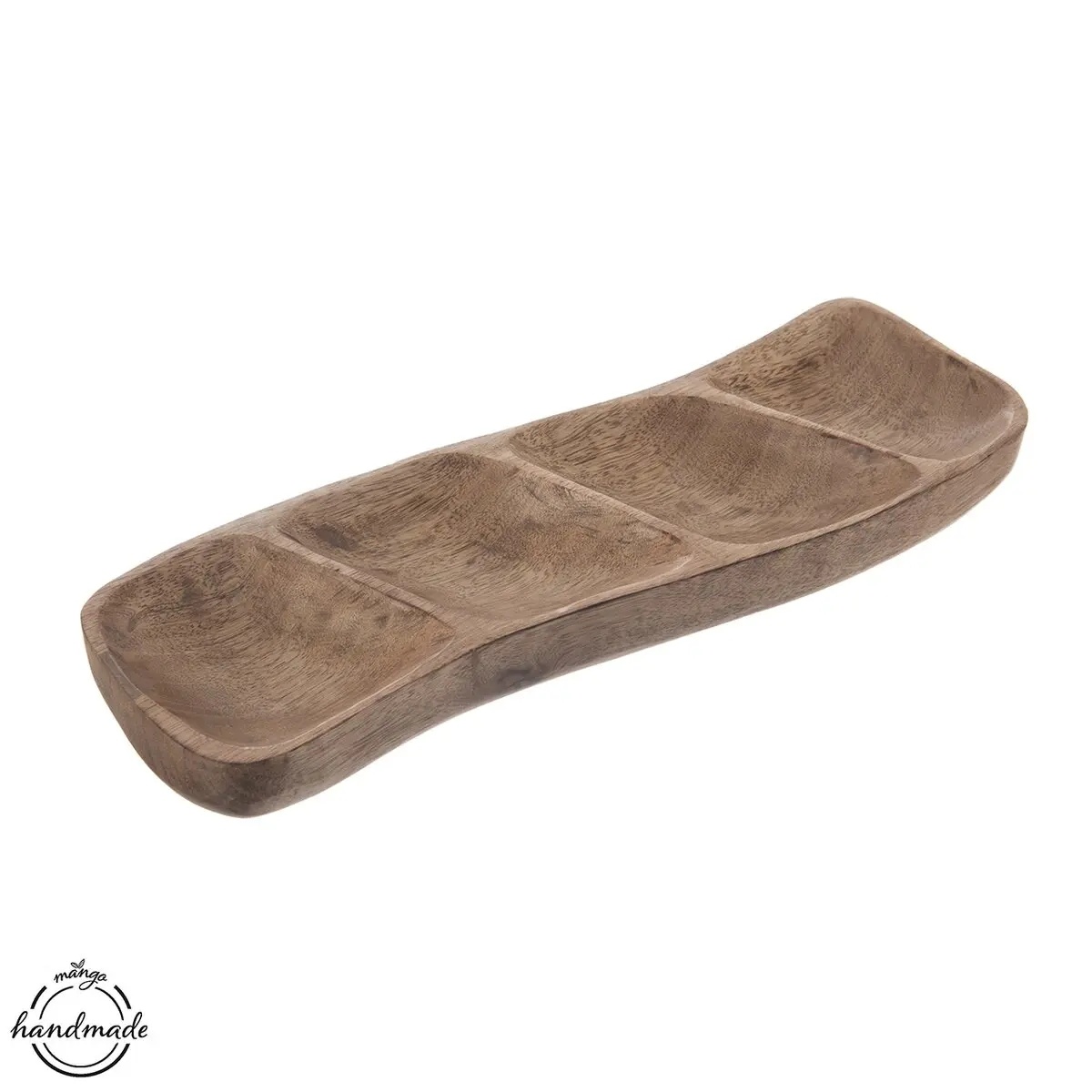 Delená servírovacia miska je vyrobená z mangového dreva a zaujme atypickým nepravidelným tvarom. Je ako stvorená na podávanie orieškov, sušeného ovocia, drobných krekrov a sušienok i cukríkov či praliniek.Samotná je peknou dekoráciou, je možné ju doplniť prírodninami.V prípade potreby ju stačí utrieť vlhkou handričkou. Raz za čas natrite jedlým olejom. Je možné, že po tomto procese mangové drevo stmavne a zvýrazní sa krásna štruktúra dreva.Jedinečné kúsky z mangového dreva vynikajú ručným spracovaním a krásnym teplým odtieňom. Ide skutočne o HAND MADE VÝROBU s miestom pôvodu v Indii, kde drevu z mangovníka vdýchnu remeselníci nový život.