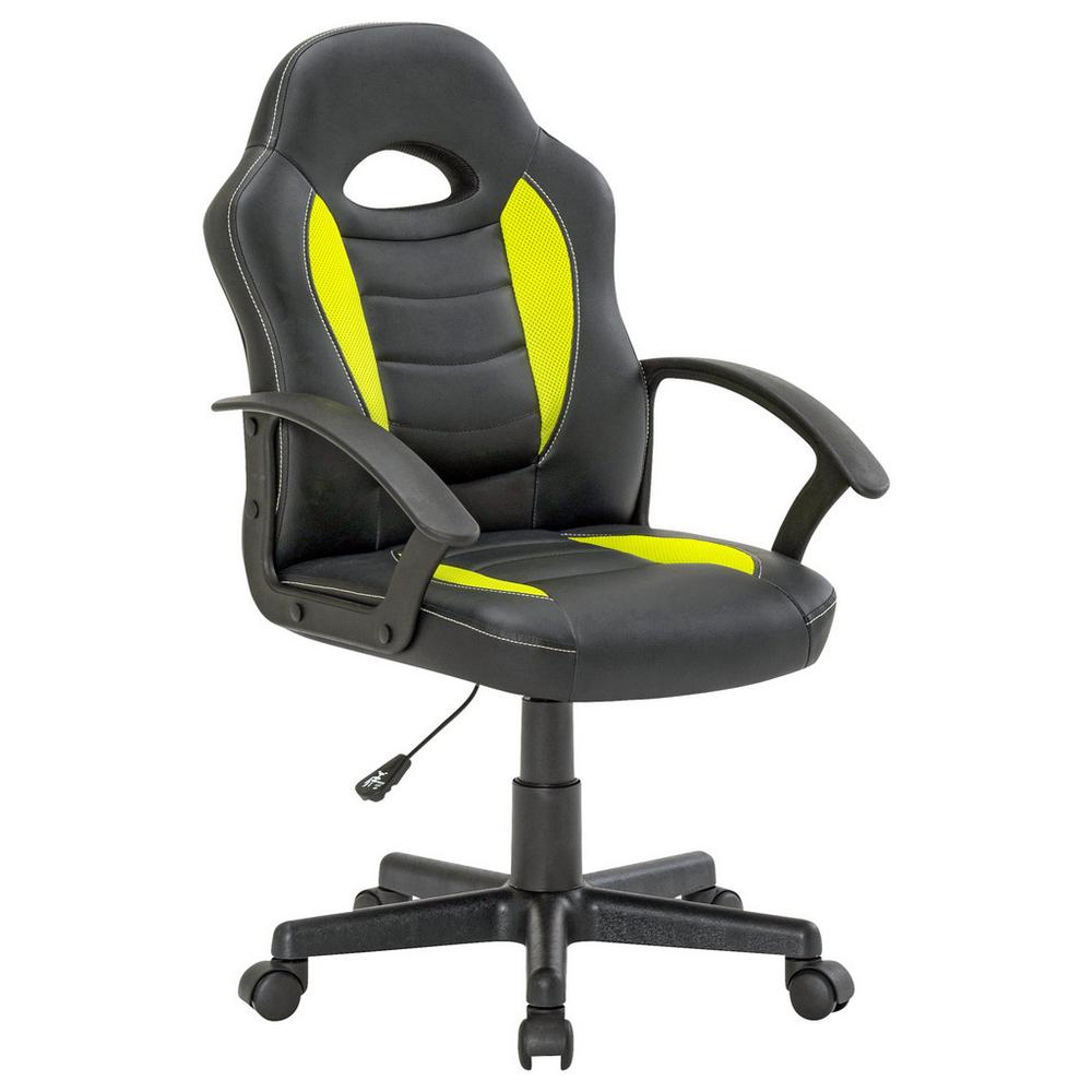 Trendová otočná stolička CANDY prinesie so svojou ležérnou farebnou kombináciou novú sviežosť do vašej domácej kancelárie! Pohodlné kancelárske kreslo, s rozmermi približne 55 x 90–102 x 85,5 cm (Š/V/H), je vyhotovené v chladnom čiernom koženom vzhľade so sieťovanými vložkami zelenej farby. Okrem vzhľadu ponúka aj pohodlné sedenie: Výška sedadla stoličky sa dá plynulo zdvihnúť od cca 42 do 54 cm, pre individuálne nastavenie polohy na sedenie. Ergonomicky tvarované operadlo a zaoblené opierky na ruky, spolu s mäkkými penovými vypchávkami, poskytujú ďalšie pohodlie. Voľnosť pohybu zaisťuje sedadlo, ktoré sa dá otočiť o 360 °, a robustný plastový podstavec s piatimi pevnými kolieskami. Stoličku je možné zaťažiť maximálne do cca 120 kg. S otočnou stoličkou CANDY získate vo svojej kancelárii praktického univerzálneho pomocníka, ktorý boduje atraktivitou aj funkčnosťou!