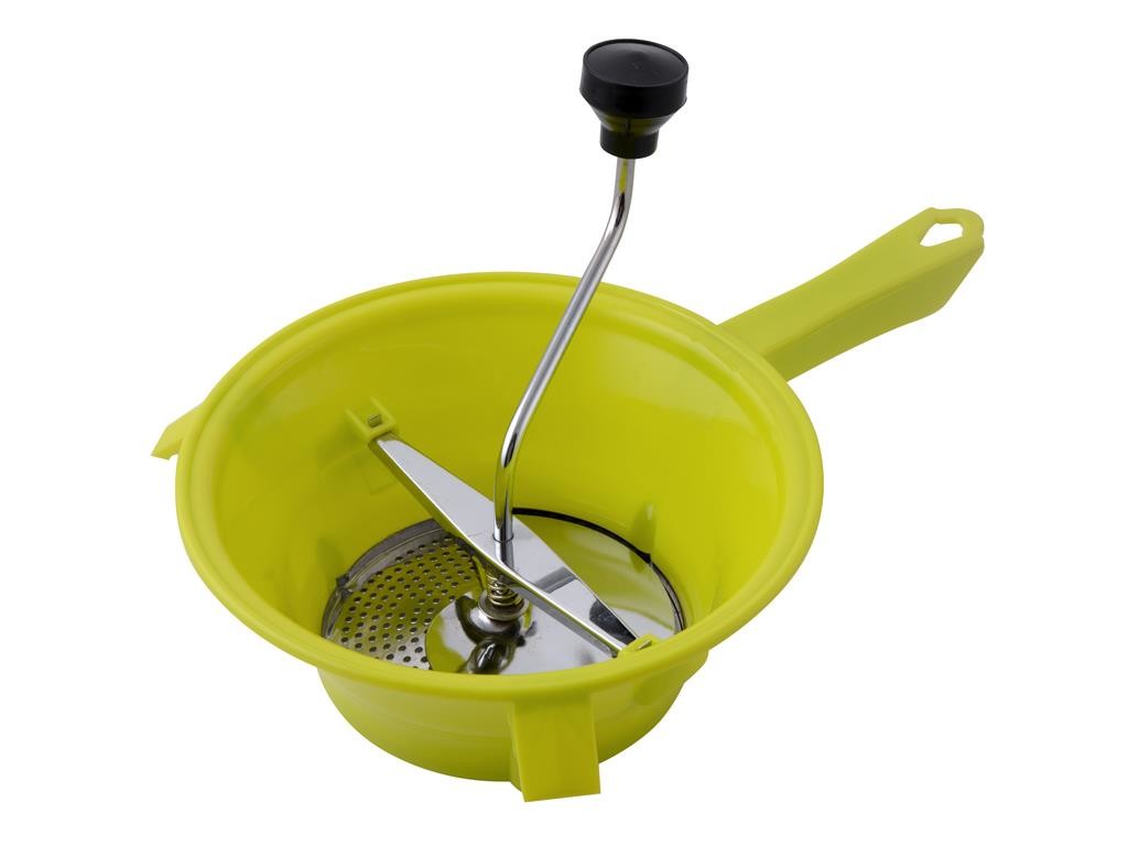 Pre pasírovanie ovocia a zeleniny je skvelý mechanický pasírovací strojček Florina. Súčasťou balenia sú 2 výmeniteľné sitká s malými otvormi.Materiál: nerez, plast. Jednoduchá údržba. Rozmery: 21,5 x 33,5 x 8,5 cm.Pasírovací strojček FlorinaPre pasírovanie zeleniny a ovocia2 výmenná sitká s malými otvormiJednoduchá údržbaFotografia je iba ilustračná. Dodávame v rôznych farebných prevedeniach a farbu nemožno zvoliť vopred
