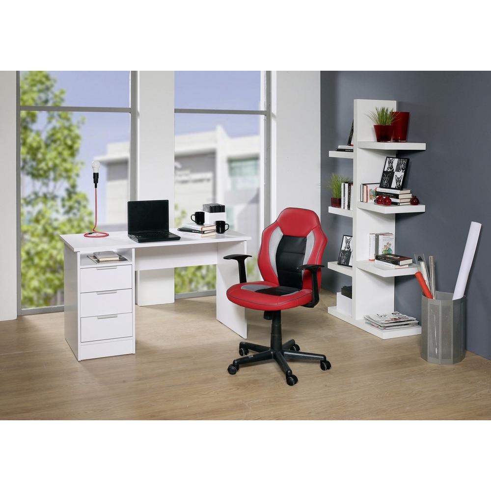 Tento elegantný písací stôl v bielej farbe vám ponúka praktický pracovný priestor pre váš domov a vďaka svojmu jednoduchému a priamočiaremu dizajnu sa dá ľahko kombinovať s rôznymi štýlmi interiéru. Veľký dekoratívny písací stôl s rozmermi cca 120 x 76 x 55 cm (Š x V x H) s lakovaným laminátovým povrchom má 1 otvorenú priehradku a 3 zásuvky pre úložný priestor.