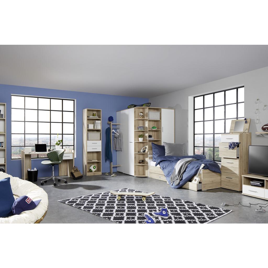 Tento elegantný písací stôl s moderným vzhľadom je súčasťou série YOUNG a ponúka vám praktický pracovný priestor pre modernú mládežnícku izbu. Stôl v rozmere Š/V/H: cca 125/77/70 cm, v kombinácii dekorov dub San Remo a biela je výškovo nastaviteľný a optimálne sa tak prispôsobuje jednotlivým užívateľom. Užitočný úložný priestor ponúka integrovaná zásuvka.