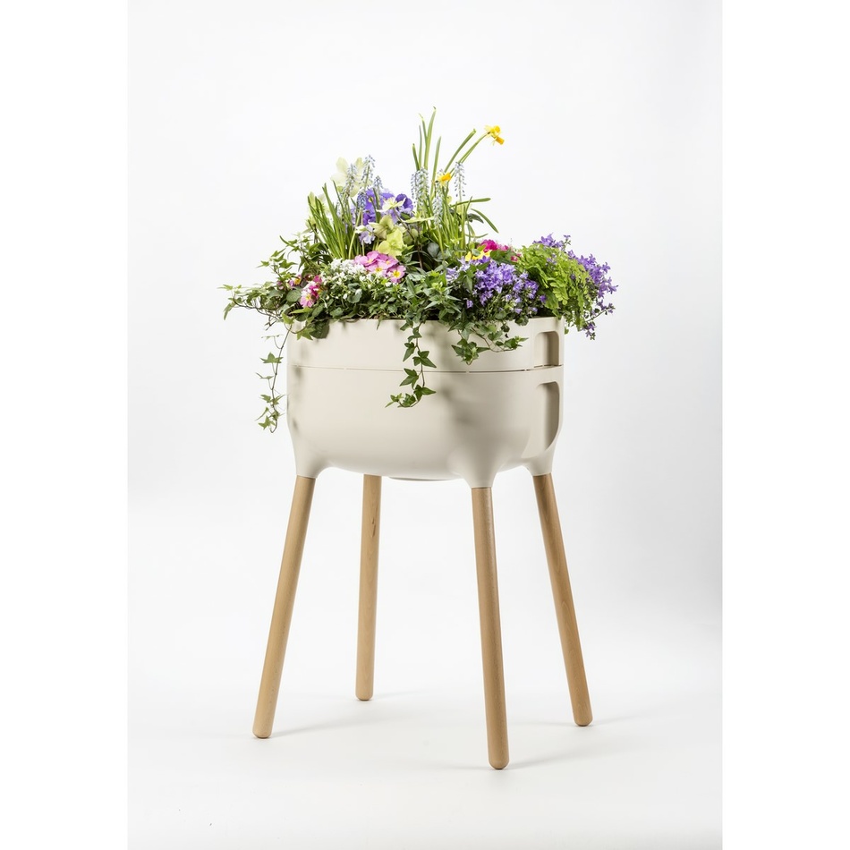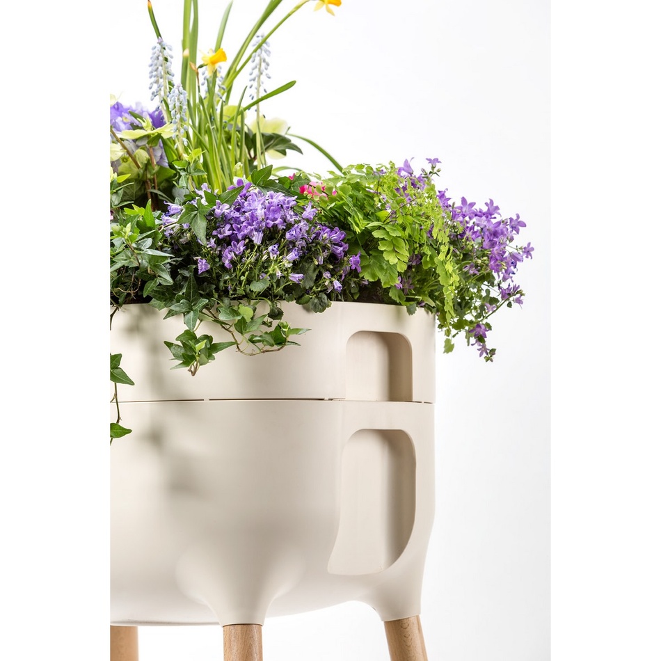 Bude sa v nej výborne dariť izbovým rastlinám, kvetinám, bylinkám alebo menej náročnej zelenine. Originálny dizajn kombinujúci drevo a plast spracoval popredný český dizajnér Jiří Pelcl. Drevené nohy umožnia ľahký prístup k rastlinám a príjemnú pohľadovú výšku.