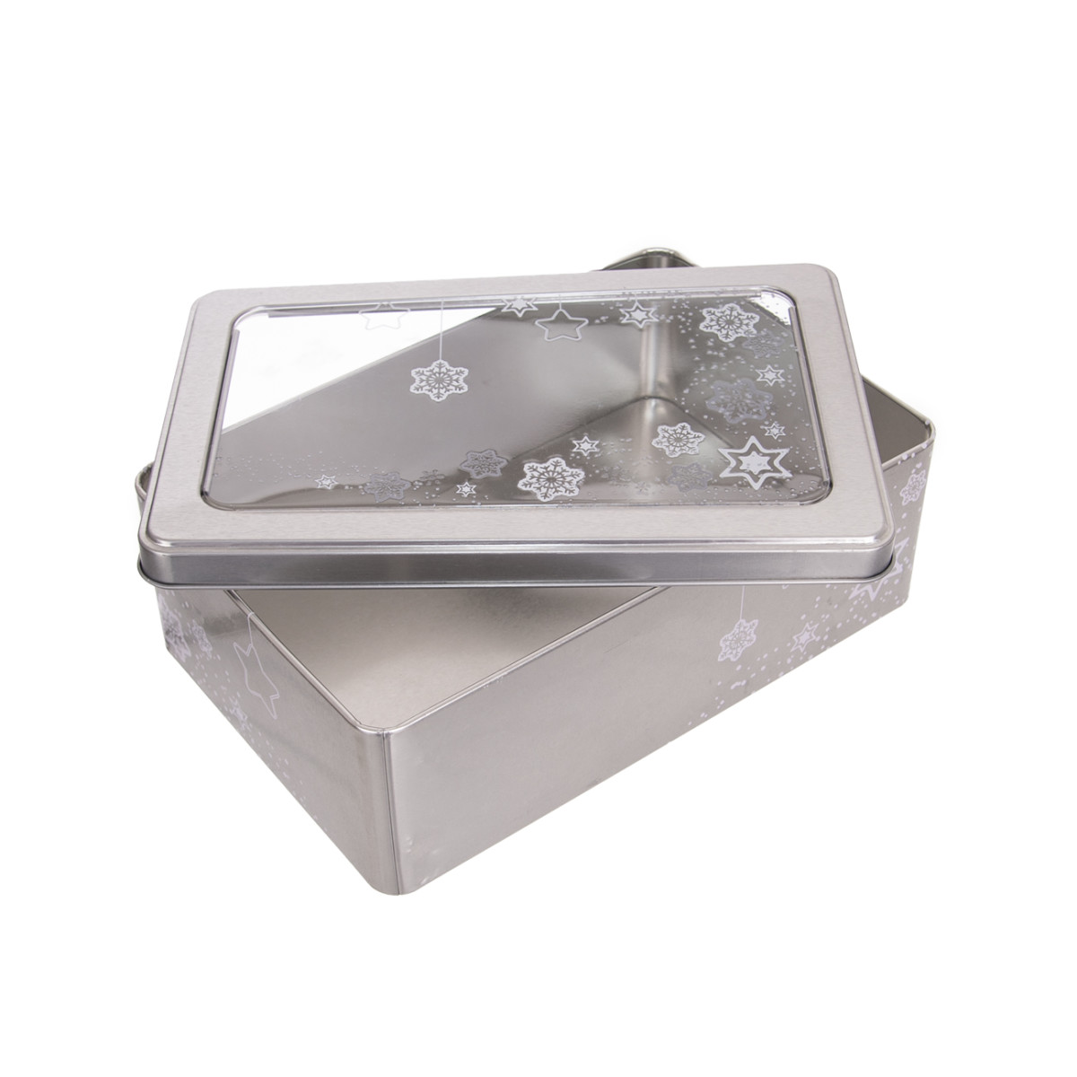 Plechová dóza s transparentným viečkom je vhodná na uloženie koláčikov, sladkostí alebo len milých drobností. Vlastnoručne upečené koláčiky uložené v dóze sa stanú originálnym darčekom. Motív snehových vločiek. Materiál: kov, plast. Rozmery: 20 x 13 x 6,5 cm.Vhodná na ukladanie cukroviniek alebo drobnostíPraktické transparentné vekoOriginálny darček