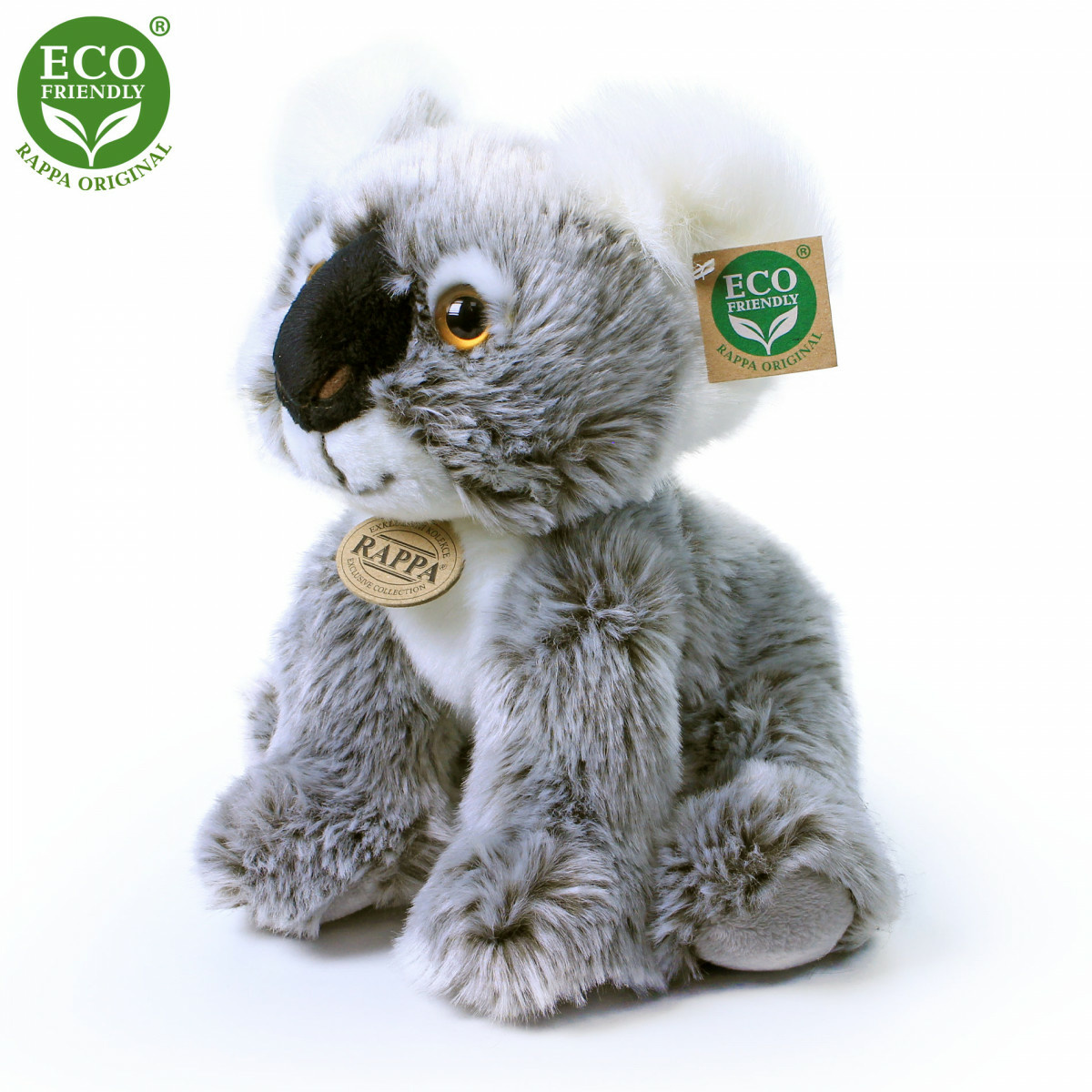 Plyšová koala je ručne ušitá z vysoko kvalitného, jemného plyšu, a vďaka tomu vyzerá ako živá. Táto sediaca koala meria 26 cm. Pre svoju roztomilosť sa stáva vítaným spoločníkom nielen do každej detskej izbičky. Je súčasťou exkluzívnej kolekcie plyšových hračiek RAPPA. Tá sa rozhodla ísť zelenou cestou čo najmenej zaťažujúce životné prostredie – cestou ECO-FRIENDLY. Výplň plyšovej hračky je vyrobená z recyklovaných PET fliaš. Tento materiál je úplne bezpečný, na omak nerozoznateľný od štandardnej výplne a plne atestovaný pre bezpečnosť aj tých najmenších.