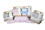 Hebká a mäkučká deka s plyšovým zajačikom je skvelý darček pre tých najmenších. Podľa vášho priania vyšijeme na deku krstné meno bábätka a napríklad aj dátum jeho narodenia.Počet vyšitých znakov úmerne ovplyvňuje výšku výšivky (viac znakov = menšie písmo). Pri použití kombinácie písmen s dolnými doťahmi (g, j, p, q, y) a hornými doťahmi (b, d, f, h, k, l, t) je nutné počítať s optickou zmenou výšky písma. V takom prípade sa celková výška výšivky meria od najvyššieho bodu písmen v hornej linke po najnižší bod písmen v spodnej linke. Tým je výsledné písmo nižšie, než by to bolo pri použití písmen iba s hornými doťahmi.Odporúčanie: rubová strana výšivky je podložená netkanou textíliou, ktorú odporúčame odstrániť až po prvom vypraní. Odstránite ju jednoduchým odtrhnutím alebo šetrným odstrihnutím nožnicami. Vrchná strana výšivky je opatrená jemnou ochrannou fóliou, ktorá je ľahko rozpustná vo vode.Farba vyšívacích nití na výber: šedá, antracitová, ružová, modrá, biela.Výber typu výšivky:meno: výška písma až 5 cmmeno + dátum narodenia: výška písma 6 cmŠablóny mix: výška písma 4 cmŠablóny mačky, psy a kone: výška písma 5 – 8 cm (výška sa prispôsobí veľkosti plochy textilu), iba v antracitovej farbeInformácie o produkte:Plyšový zajačik s dekou je skvelý darček hneď od chvíle narodenia bábätka. Deka je veľmi jemná, mäkká a hrejivá. Materiál: 100% polyester. Rozmery: zajačik 30 cm, deka 75 x 90 cm. Výber z niekoľkých farieb.
