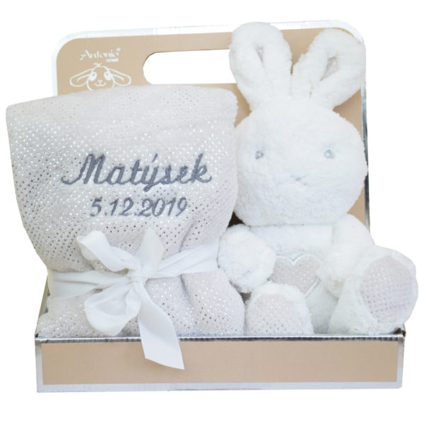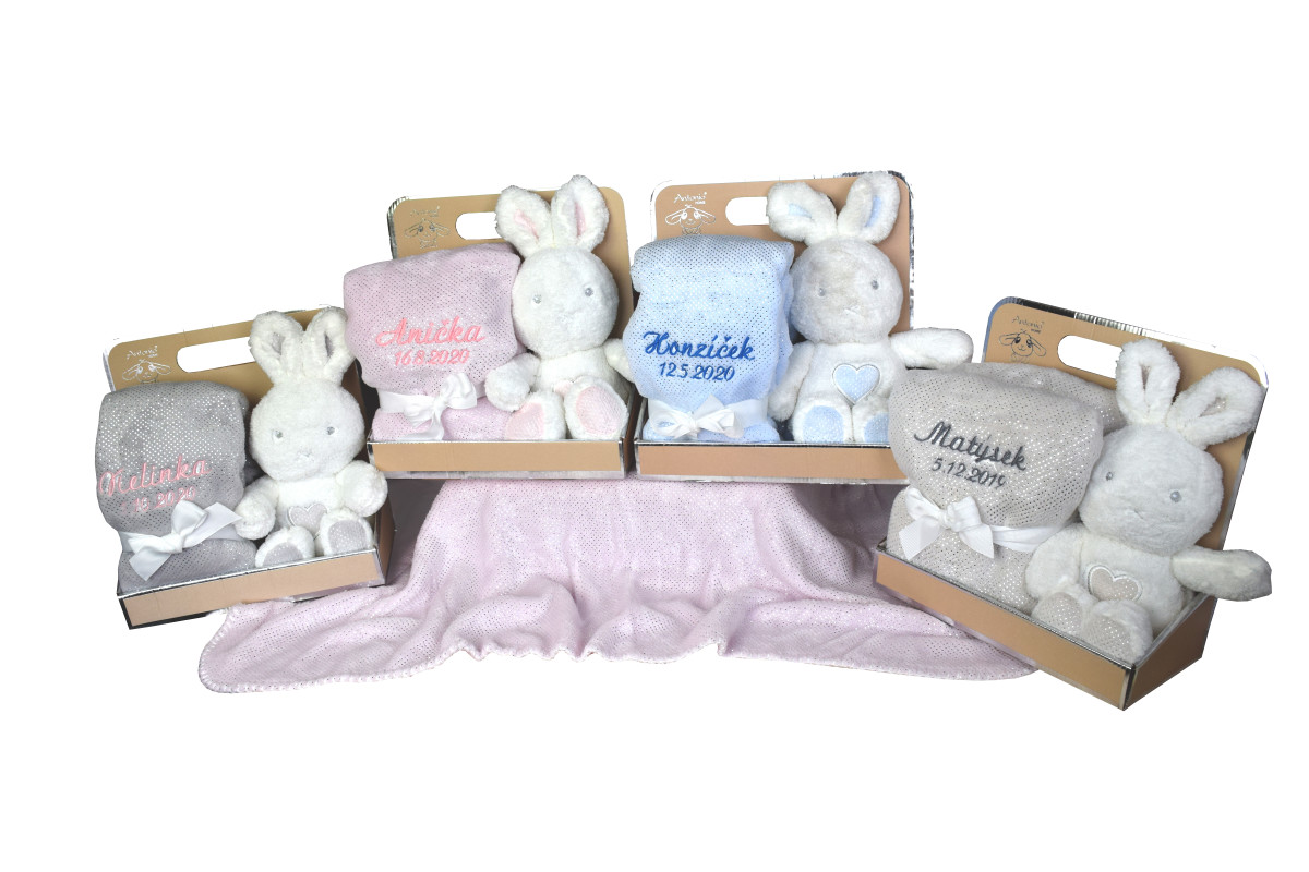 Hebká a mäkučká deka s plyšovým zajačikom je skvelý darček pre tých najmenších. Podľa vášho priania vyšijeme na deku krstné meno bábätka a napríklad aj dátum jeho narodenia.Počet vyšitých znakov úmerne ovplyvňuje výšku výšivky (viac znakov …