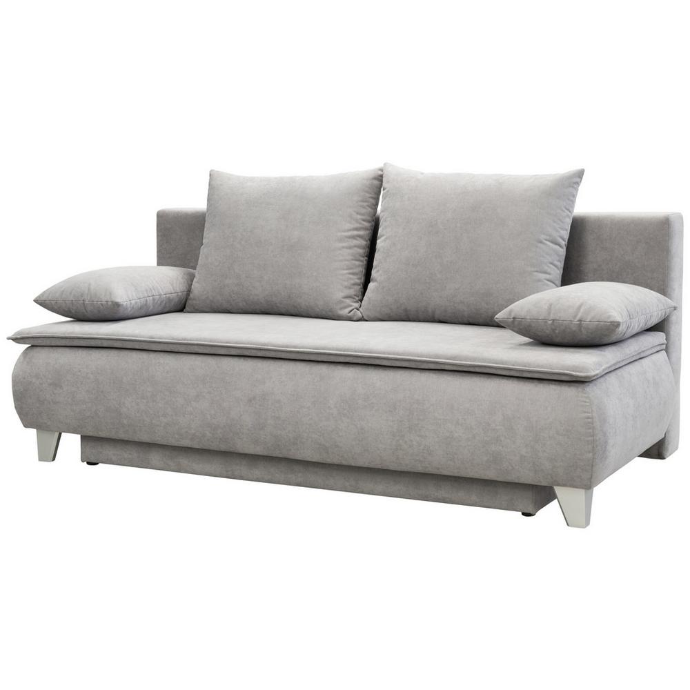Moderný dizajn, pohodlné sedenie aj ležanie – pružinová pohovka MONA od LUCA BESSONI obohatí váš príbytok! Tento gauč má rozmery cca 208 x 100 x 106 cm (Š x V x H) a ponúka sedenie pre cca tri osoby. Je zahalená do modernej sivej farby. Rozšírené nožičky striebornej farby krásne dopĺňajú svetlý povrch pohovky. Dva chrbtové vankúše a dva ozdobné vankúše spolu s vnútrom pohovky z taštičkových a nosagových pružín zaisťujú naozaj dobrý komfort pri sedení. Sedačka má výšku sedenia cca 46 cm a maximálnu nosnosť 110 kg. Pre spontánnych hostí ponúka tento čalúnený nábytok skvelé miesto na prespanie. Operadlo sa jednoducho zloží a vytvorí sa plocha na ležanie s rozmerom asi 200 x 160 cm (D x Š). Vankúše a prikrývky možno uložiť do praktického úložného boxu. Útulný kus nábytku s jednoduchou eleganciou, ktorý sa dobre hodí do moderných domácností.