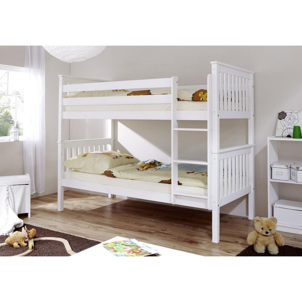 Tento výrobok je k dispozícii IBA ONLINE. Dodanie je zadarmo. Chcete úplnú flexibilitu v dizajne detskej izby? Potom je poschodová posteľ SAMMY ideálnou voľbou! S dvomi plochami lôžok, približne 90 x 200 cm (Š x D), ponúka posteľ dostatok priestoru na spanie. Pri montáži máte na výber, či si zostavíte jednu poschodovú posteľ, a šikovne tak vytvoríte veľa priestoru v malej detskej izbe, alebo ju rozdelíte na dve samostatné postele (viď obrázky). Zostavili ste materiál ako poschodovú posteľ? Rebrík je pohodlnou súčasťou postele SAMMY. Súčasťou dodávky je aj ochrana proti pádu vo forme vrchného zábradlia. Posteľ je vyrobená z vysokokvalitného borovicového dreva a je skutočne kvalitným výrobkom, z ktorého sa budete tešiť mnoho rokov a ktorý je možné rovnako dobre využiť v detskej, ako aj v hosťovskej izbe. Každé lôžko je možné zaťažiť do 75 kg a dve postele dohromady, či už oddelene alebo v celku, majú nosnosť 150 kg. Ďalšou výhodou tejto postele je veľkorysá výška nôh. Ak potrebujete ďalší úložný priestor, je najlepšie posteľ rozšíriť o zodpovedajúci úložný priestor a udržiavať tak deky, vankúše a zbierku plyšových hračiek upratané. Model SAMMY je k dispozícii v rôznych farbách a prevedeniach. Te