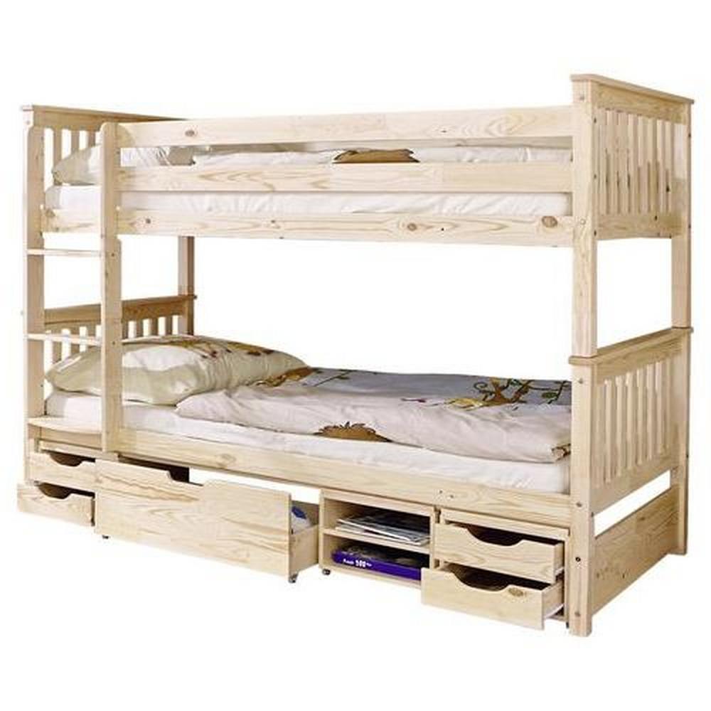 Tento výrobok je k dispozícii IBA ONLINE. Dodanie je zadarmo. Chcete úplnú flexibilitu v dizajne detskej izby? Potom je poschodová posteľ SAMMY ideálnou voľbou! S dvomi plochami lôžok, približne 90 x 200 cm (Š x D), ponúka posteľ dostatok priestoru na spanie. Pri montáži máte na výber, či si zostavíte jednu poschodovú posteľ, a šikovne tak vytvoríte veľa priestoru v malej detskej izbe, alebo ju rozdelíte na dve samostatné postele (viď obrázky). Zostavili ste materiál ako poschodovú posteľ? Rebrík je pohodlnou súčasťou postele SAMMY. Súčasťou dodávky je aj ochrana proti pádu vo forme vrchného zábradlia. Posteľ je vyrobená z vysokokvalitného borovicového dreva, je ponechaná v prírodnej farbe&n