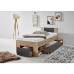 Posteľ AZURRO je skvelým riešením do izby pre deti a mládež alebo hosťovskej izby. Povrch s dekorom dub artisan je kombinovaný s povrchmi v antracitovom prevedení, čím vzniká zaujímavý celok s príjemnými odtieňmi, čo je ideálne pre dobrý pocit pri spánku. Model s plochou na ležanie cca 90 x 200 cm (Š x D) je určený pre jednu osobu. Najväčšie plus tejto postele je jej členitý, dobre rozložený úložný priestor. Disponuje celkom dvomi zásuvkami a niekoľkými otvorenými priečinkami, ktoré možno využiť napríklad na knižky či papuče. Zásuvky aj otvorené priečinky sa dajú vysúvať na kolieskach s hladkým chodom. Celková veľkosť postele je cca 203 x 93 x 80 cm (D x Š x V). Výška čela je asi 31 cm. Posteľ je optimálne prístupná zo všetkých strán a jej maximálna nosnosť je 80 kg. Výška nôh cca 49 cm zaisťuje dostatok úložného priestoru pod posteľou. Posteľ AZURRO boduje vzhľadom aj funkciou a je dostupná v rôznych rozmeroch a farbách. Užite si tie najlepšie sny vo svojej oáze pohody pod menom AZURRO! Rošt, matrac a vyobrazené doplnky nie sú súčasťou balenia. Pozrite si aj naše produkty z kategórie: