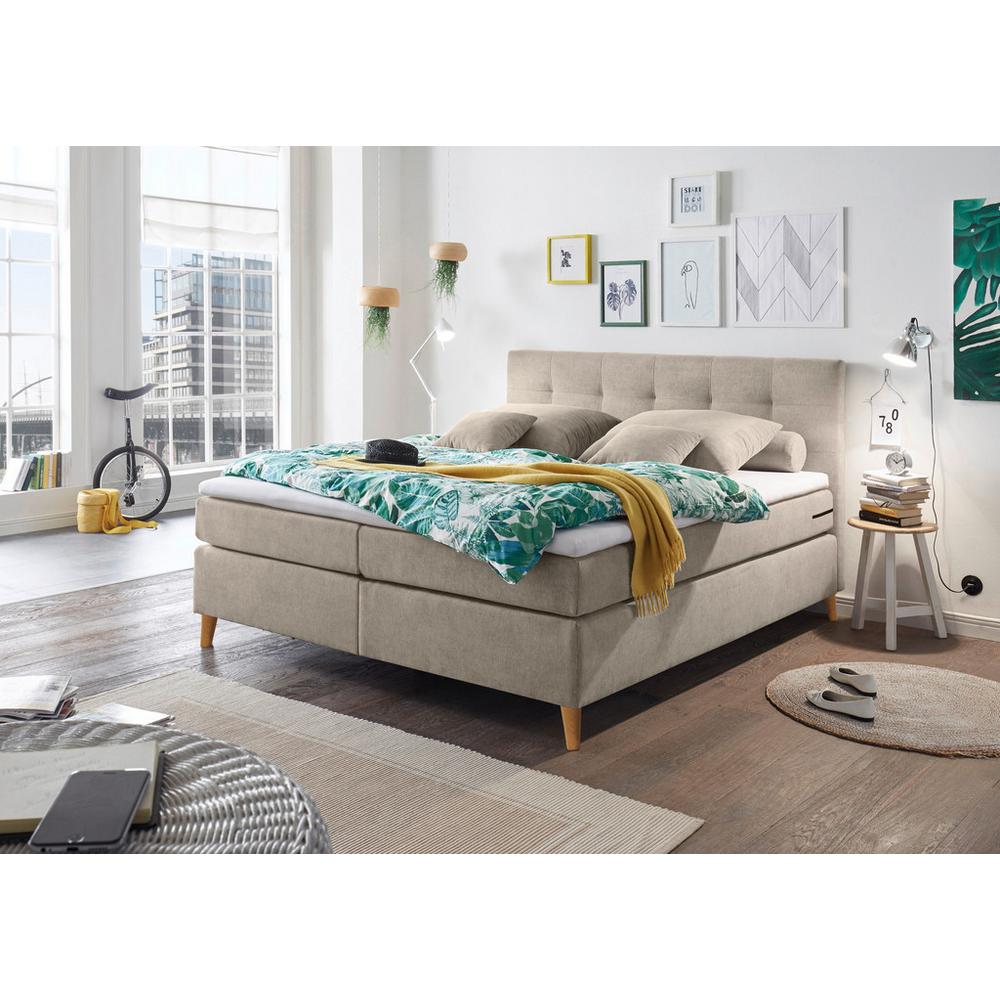 Tento výrobok je k dispozícii IBA ONLINE. Dodanie je zadarmo. Boxspring posteľ MISSOURI 1 spĺňa najvyššie štandardy moderného dizajnu a pokojného spánku. Plocha na ležanie s veľkorysými rozmermi cca 200 x 180 cm (D x Š) a výškou ležania cca 65 cm z nej robí skutočnú komfortnú zónu. Vďaka svojmu jednoduchému, estetickému vzhľadu a jemnej farebnej schéme v pieskových odtieňoch je vynikajúcim doplnkom k mnohým štýlom zariadenia. Spodný box postele je vybavený pevným pružinovým jadrom Bonell. Na ňom spočívajú súdkové taštičkové matrace so 7 zónami na ležanie, ktoré sa počas spánku prispôsobujú individuálnym kontúram tela. Zdravé pohodlie pri ležaní dopĺňa vrchný ochranný matrac s odnímateľným poťahom a s penovým jadrom, s výškou cca 4 cm. Veľkorysé čelo postele a celá konštrukcia je potiahnutá ľahko udržiavateľným a odolným čalúnením zo 100 % polyesteru, ktoré dodáva tomuto kusu nábytku teplo a pohodlie. Kónické nohy z borovicového dreva zaručujú dlhotrvajúcu stabilitu a dotvárajú celkový útulný dizajn. ČASTÉ OTÁZKY ZÁKAZNÍKOV – MY ODPOVEDÁME: Aký je rozdiel medzi pružinovým jadrom Bonell a jadrom s taštičkovými pružinam