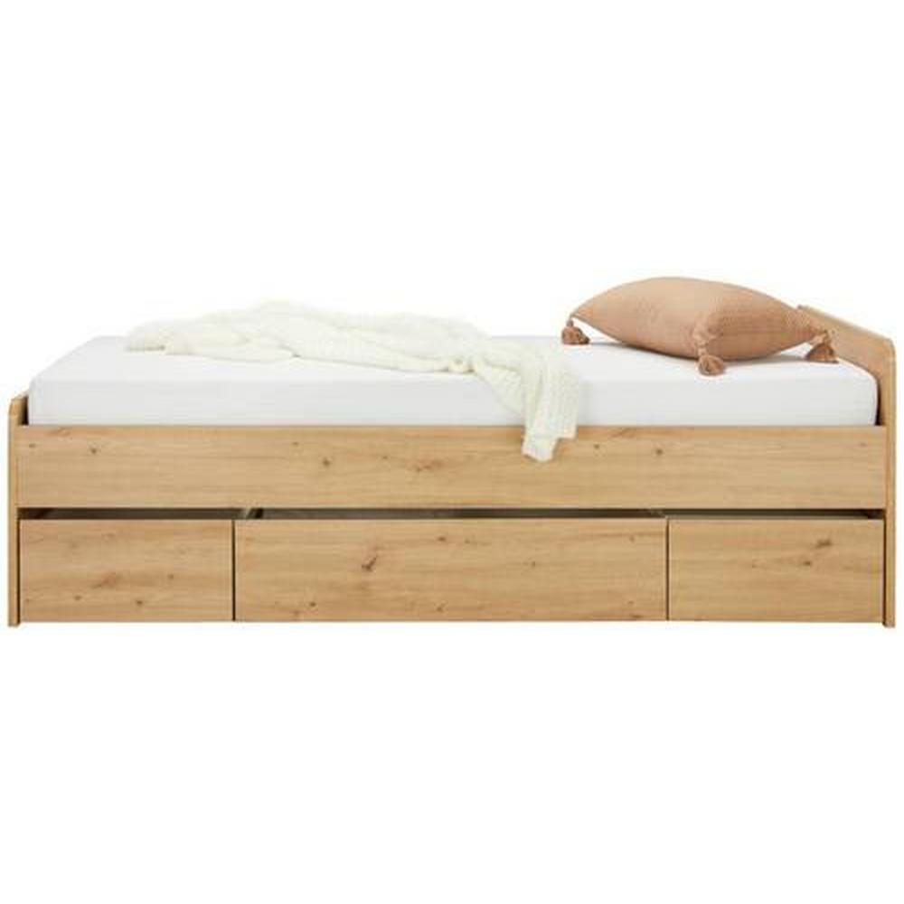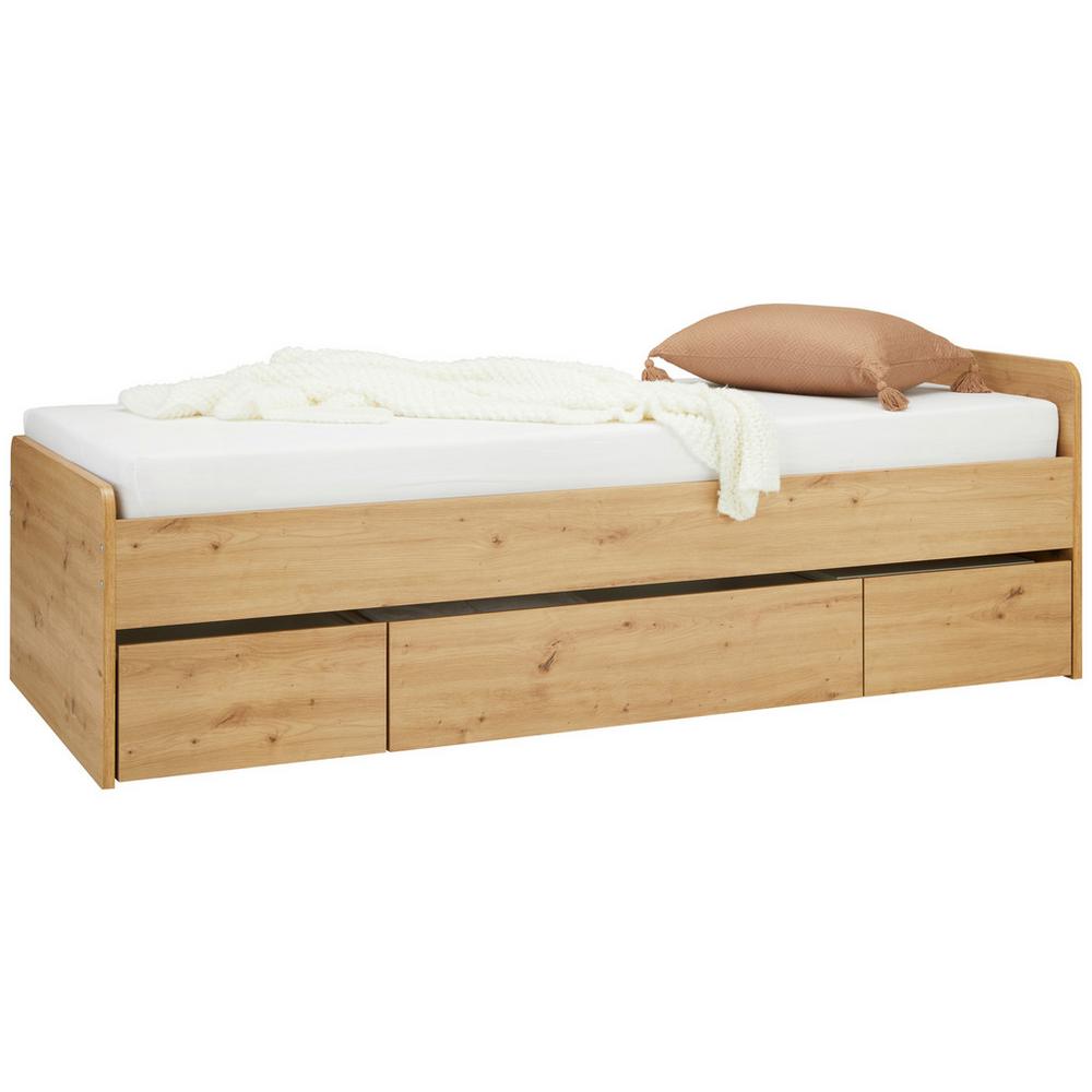Posteľ DIRK v dekore dub artisan s plochou na ležanie cca 90 x 200 cm (Š x D) a nosnosťou 85 kg – dokonalé spojenie funkčnosti a elegancie! Táto sofistikovaná posteľ meria približne 94 cm na šírku, približne 60 cm na výšku a približne 204 cm na hĺbku. Má tri priestranné zásuvky, ktoré poskytujú nielen ďalší úložný priestor, ale aj šikovné riešenie vašich potrieb pri posteli. Minimalistický, nadčasový dizajn postele harmonicky zapadne do každej miestnosti a navodí pokojnú a štýlovú atmosféru. Melamínový povrch zaistí dlhodobo pekný vzhľad a jednoduchú údržbu. Posteľ je u nás dostupná aj v iných farbách. Pozrite si aj naše produkty z kategórie: postele s rozmermi 90×200