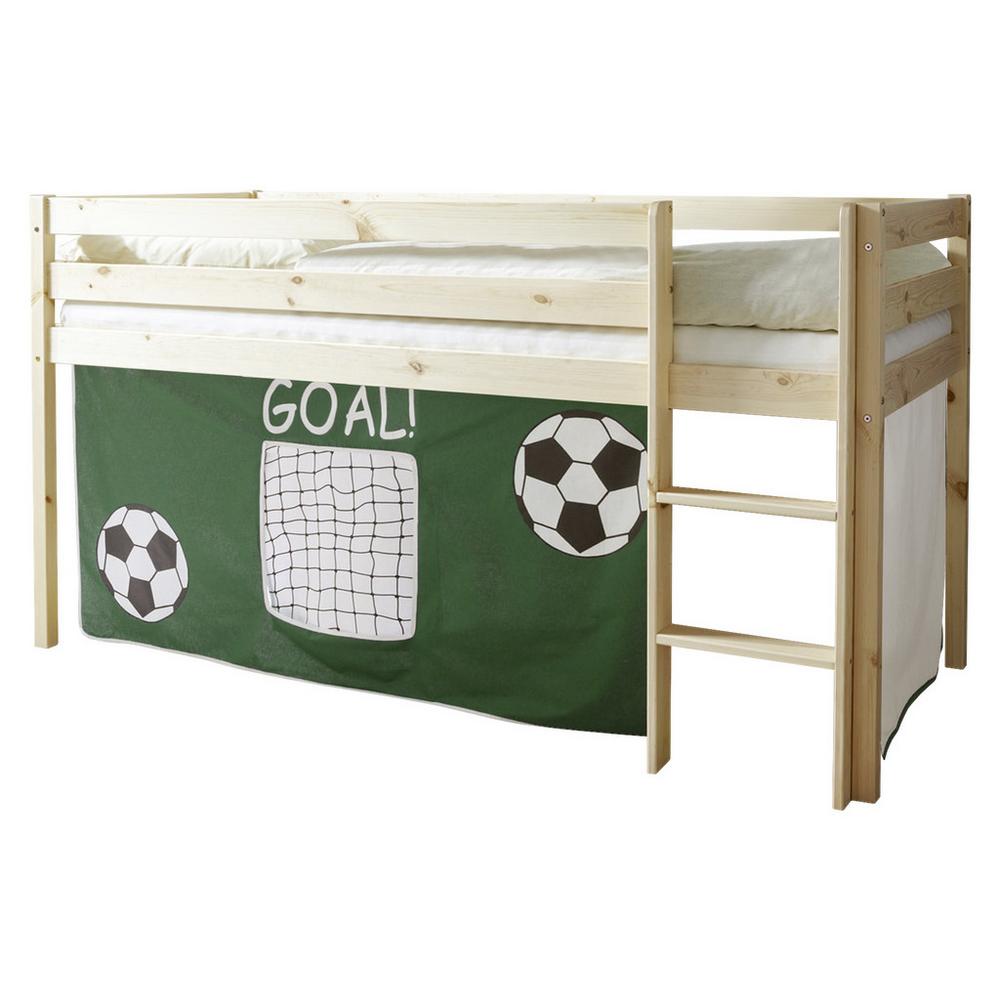 Tento výrobok je k dispozícii IBA ONLINE. Dodanie je zadarmo. Detská izba sa stáva dobrodružnou oázou: posteľ MALTE zapôsobí na rodičov aj deti. Je vyrobená z vysokokvalitného borovicového dreva a dopraje vášmu dieťaťu príjemný spánok s plochou na ležanie približne 200 x 90 cm (D x Š). Celkovo má posteľ rozmery cca 206 x 101 x 113 cm (D x Š x V) a jej súčasťou je aj rebrík a vrchná zábrana proti pádu. Táto verzia modelu MALTE v borovicových farbách vyzerá obzvlášť útulne a dodáva detskej izbe harmonický nádych. Súčasťou je aj opona. Tým sa spodná časť postele premení na útulnú jaskyňu, v ktorej si môžete s deťmi rozprávať príbehy alebo sa hrať na schovávačku. Nudiť sa určite nebudete! V zelenej farbe a s veselou potlačou je táto posteľ vhodná pre malých futbalistov. Herná posteľ MALTE aj opona sú k dispozícii v rôznych farbách a prevedeniach. Tento tovar je k dispozícii IBA ONLINE, a zároveň je to tovar s doručením formou DROPSHIPPING.