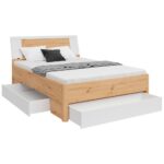Nadčasovo moderný spálňový nábytok SATURN je pohodlným úložným riešením a ponorí domov do uprataného, domáckeho prostredia. Jednoduchá a priamočiara: posteľ SATURN má celkové rozmery cca 216 x 145 x 97 cm (D x Š x V) a plochu na ležanie cca 140 x 200 cm. Krásne povrchy v prevedení remeselného dubu (dub artisan) skvele ladia k prvkom matnej bielej farby. Výrazné záhlavie so zabudovaným LED osvetlením pridáva posteli decentné akcenty naviac. Tri zásuvky v spodnej časti poskytujú dostatok miesta na lôžkoviny a iné veci. Posteľ má maximálnu nosnosť 240 kg a je u nás dostupná vo viacerých prevedeniach. Upozorňujeme, že rošty, matrace a vyobrazené lôžkoviny nie sú súčasťou postele. Bohatý výber príslušenstva nájdete aj v našom internetovom obchode alebo kamenných predajniach.   Komody, skrine s posuvnými dverami, nočné stolíky: Objavte ďalší nábytok zo série SATURN a vytvorte si svoju individuálnu spálňu snov s príkladným pomerom ceny a výkonu! Pozrite si aj naše produkty z kategórie: