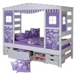 Posteľ v tvare domčeka LIO záves fialový