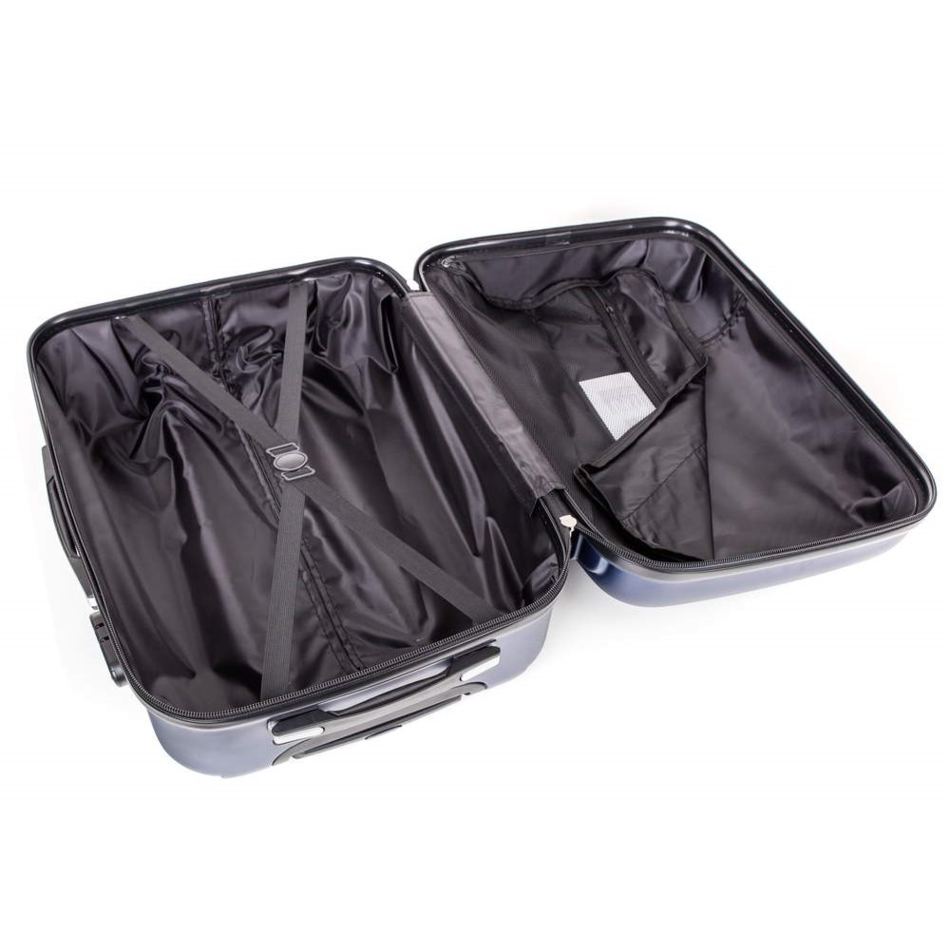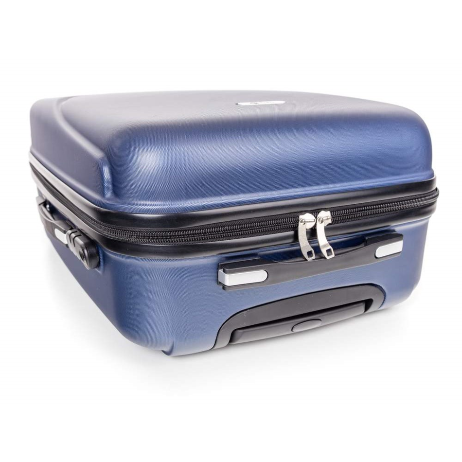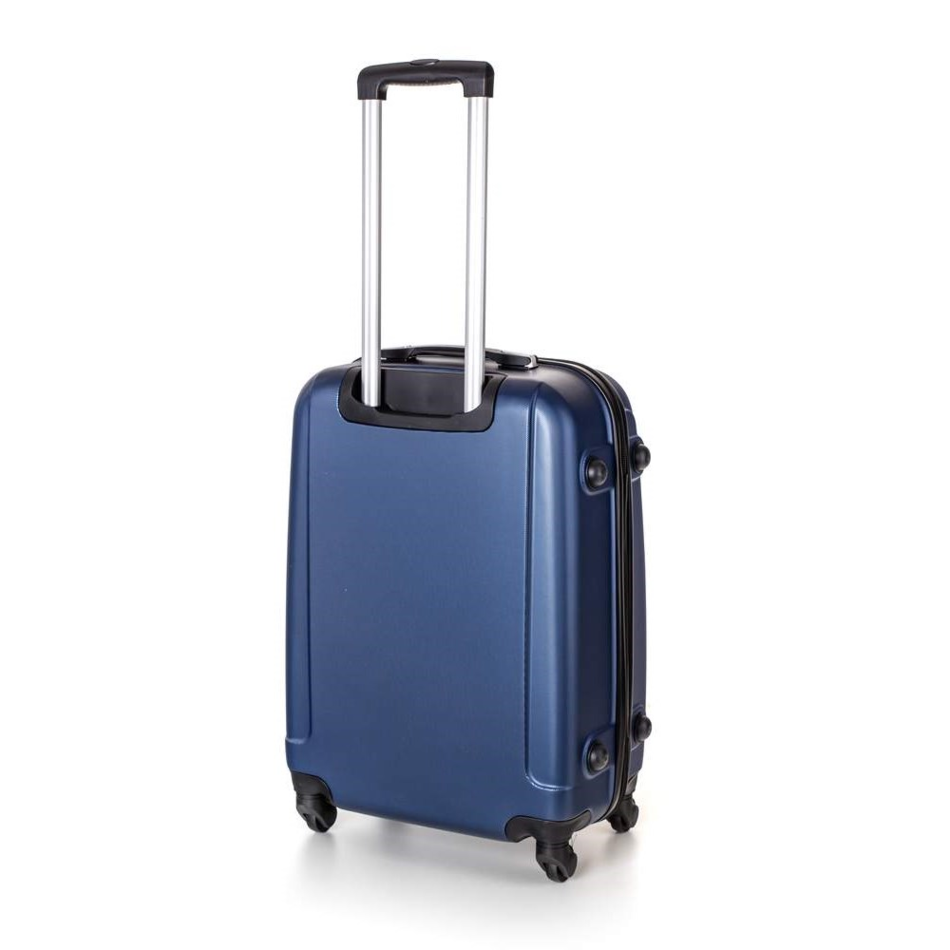 Cestovný škrupinový kufor na kolieskach ABS16 veľkosti M v modrej farbe, je vyrobený z kvalitného plastu ABS, ktorý je odolný proti nárazu. Je opatrený 4 kolieskami otočnými o 360 st., vďaka tomu je manipulácia s kufrom veľmi jednoduchá. Kufor má 3 plastové držadlá: bočné a dve horné, z ktorých je jedno s teleskopickou rukoväťou s poistkou proti zasunutiu a možnosťou nastaviteľnej výšky vo viacerých polohách.Kufor sa uzatvára na zips a oboch jazdcov môžete spojiť do kódového zámku. Vnútorná časť kufra má látkovú deliacu prepážku s vreckom a krížové upínanie pre lepšiu fixáciu a usporiadanie vašich vecí. Nosnosť cestovnej batožiny je 18 kg. Rozmery: 59 x 43 x 26 cm a výška kufra vr. koliesok 64 cm. Objem: 61 l. Váha: 3,2 kg.