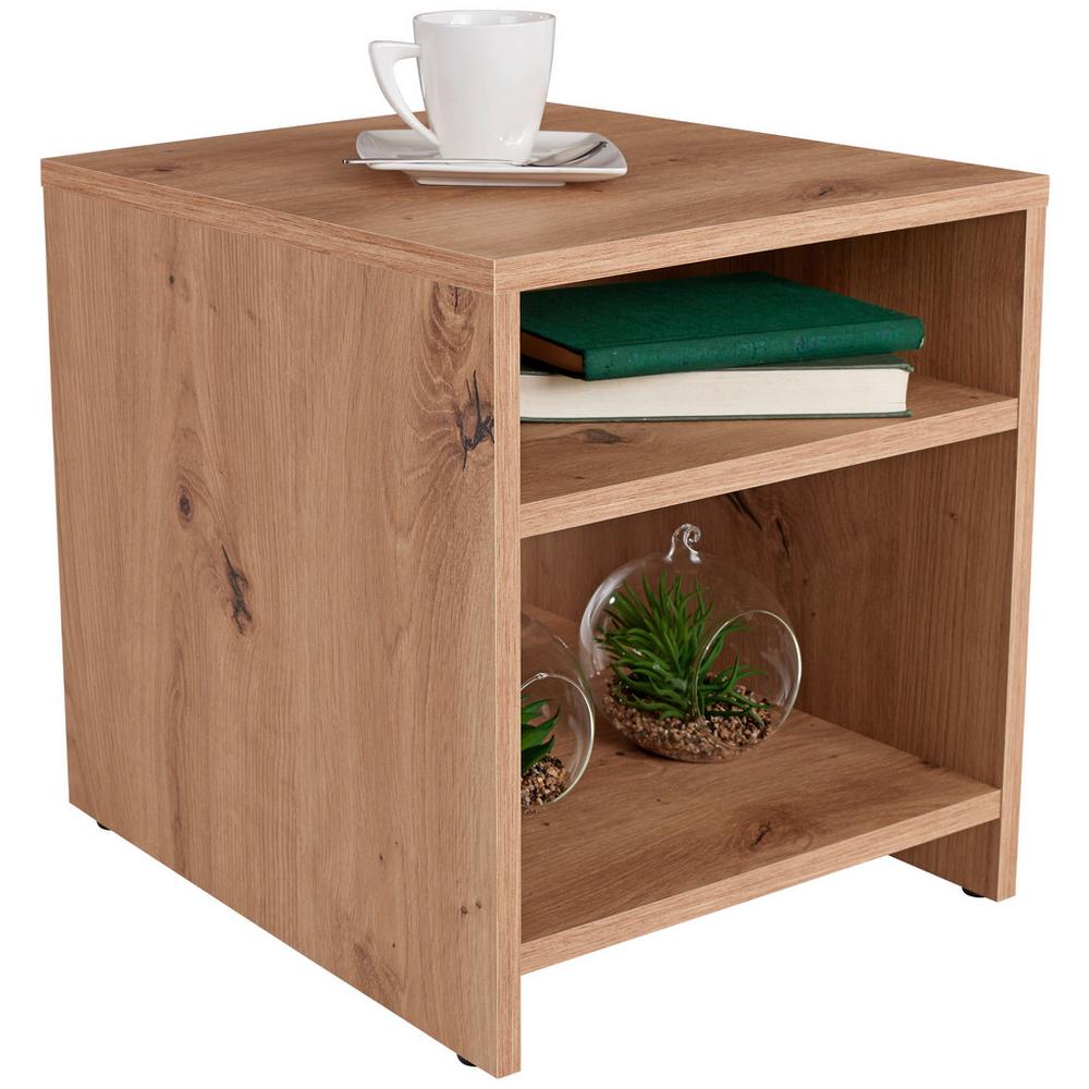 Kompaktný odkladací stolík v dekore dub Artisan je praktický a všestranne využiteľný – či už v pracovni, v spálni ako nočný stolík alebo odkladací stolík v obývacej izbe. Stolík o rozmeroch cca 40 x 40 x 37 cm (Š x V x H) a nosnosti 5 kg sa zmestí aj do tých najmenších priestorov. Vďaka 2 priehradkám budete mať dosť miesta na ukladanie kníh, časopisov, regálových boxov a mnoho ďalšieho. Stolík je dostupný aj v ďalších farbách! Najdôležitejšie informácie: Rozmery v cm (Š x V x H): 40 x 40 x 37 Materiál: dekor dub remeselný Hrúbka dosky stola v mm: 16 Max. nosnosť približne v kg: 5 2 úložné priestory Povrch z melamínovej živice