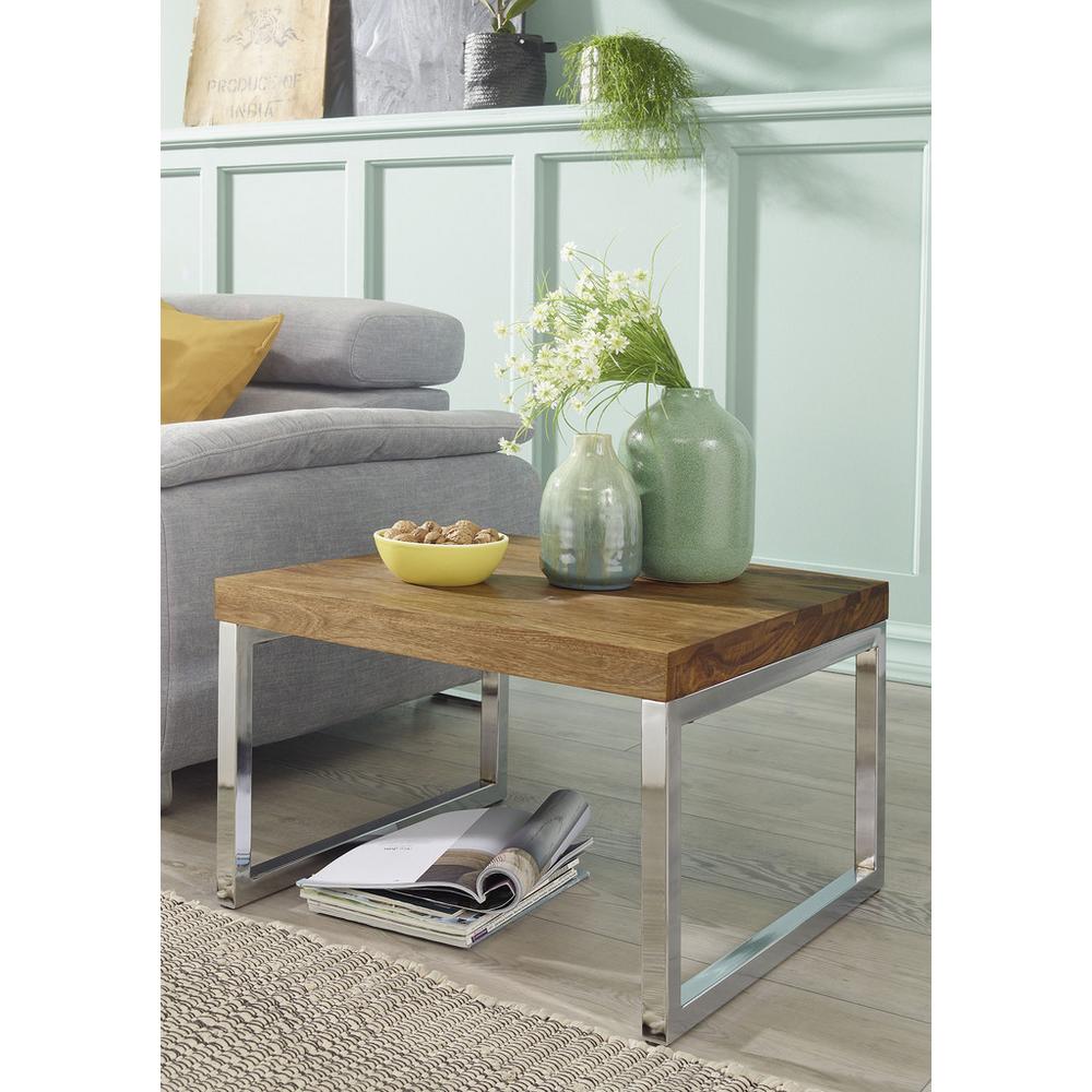 Tento výrobok je k dispozícii IBA ONLINE: So štvorcovým príručným stolíkom GUNA sa spájajú priame, jasné tvary a ušľachtilá prirodzenosť, ktoré vytvárajú pôsobivý kus nábytku pre každý domov. Odkladací stolík, s rozmermi cca 60 x 40 x 60 cm (Š x V x H), ponúka úložný a prezentačný priestor na občerstvenie, časopisy, poháre alebo dekorácie. Chrómované nohy stola vo forme lyžín skvelo ladia s doskou stola z tmavohnedého masívneho dreva sheesham a vytvárajú tak vizuálne harmonickú alternatívu pre mnoho štýlov zariaďovania. Originálny vzhľad tohto stola poteší vás aj vašich hostí. Stôl je možné zaťažiť do 30 kg. Sheeshamové drevo z Indie – Táto listnatá drevina, nazývaná tiež indický palisander patrí medzi najtvrdšie dreviny celkom. Nedochádza pri nej k ohýbaniu, štiepeniu a je veľmi odolná voči rozkladu. Drevo sheeshamu má veľmi výraznú kresbu, hustú štruktúru a veľa pórov – každý jeden kus nábytku má preto jedinečný vzhľad! Pozrite si v našom internetovom obchode ďalšie drevené príru