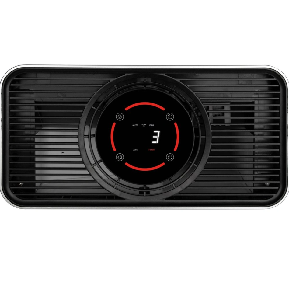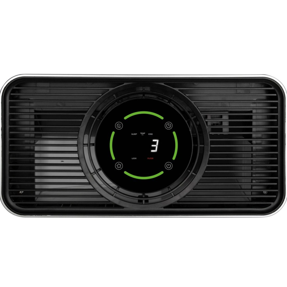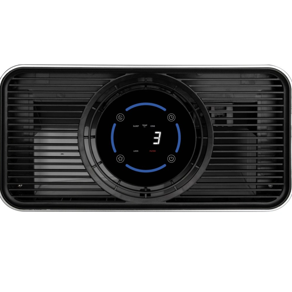 maximálny výkonPre automatizované používanie je tu funkcia časovača, ktorý je možné nastaviť až na 12 hodín. Zobrazuje sa tiež aktuálna teplota v miestnosti. Medzi užitočné funkcie patrí detská poistka. Čistička vzduchu sa ovláda dotykovými senzormi a jej prevádzka sa kontroluje vďaka 4 LED kontrolkám. Je konštruovaná tak, aby výmena filtra bola čo najjednoduchšia. Súčasťou balenia je diaľkové ovládanie. Celkový výkon je 45 W, napájanie 230 V, 50 Hz