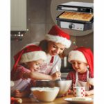 Vaflovač na pravé tradičné vafle má 2 veľké plochy na pečenie, každá s plochou cca 24 x 24 cm (nepriľnavý povrch). Naraz môžete pripravovať až 4 kúsky vaflí, takže je prístroj vhodný do väčšej rodiny.Má 3 nehrdzavejúce časti: veko, rukoväť a prednú časť. Príprava lahodných raňajok zaberie sotva pár minút. Disponuje tepelne izolovanou rukoväťou, plynule nastaviteľnou úrovňou zhnednutia. 2 kontrolky prevádzky vám ukážu stav napájania a kúrenia.Extra ľahké čistenie: plochy na pečenie s nepriľnavým povrchom, uzavretý ochranný kanál proti pretečeniu, ktorý zachytí prebytočné cesto. Vysokú stabilitu má vaflovač vďaka pogumovaným nožičkám. Má funkciu ochrany proti prehriatiu a bezpečnostné vypnutie. Úložný priestor pre kábel.Napájanie/výkon: 230 V, 50 Hz, 1200 W.