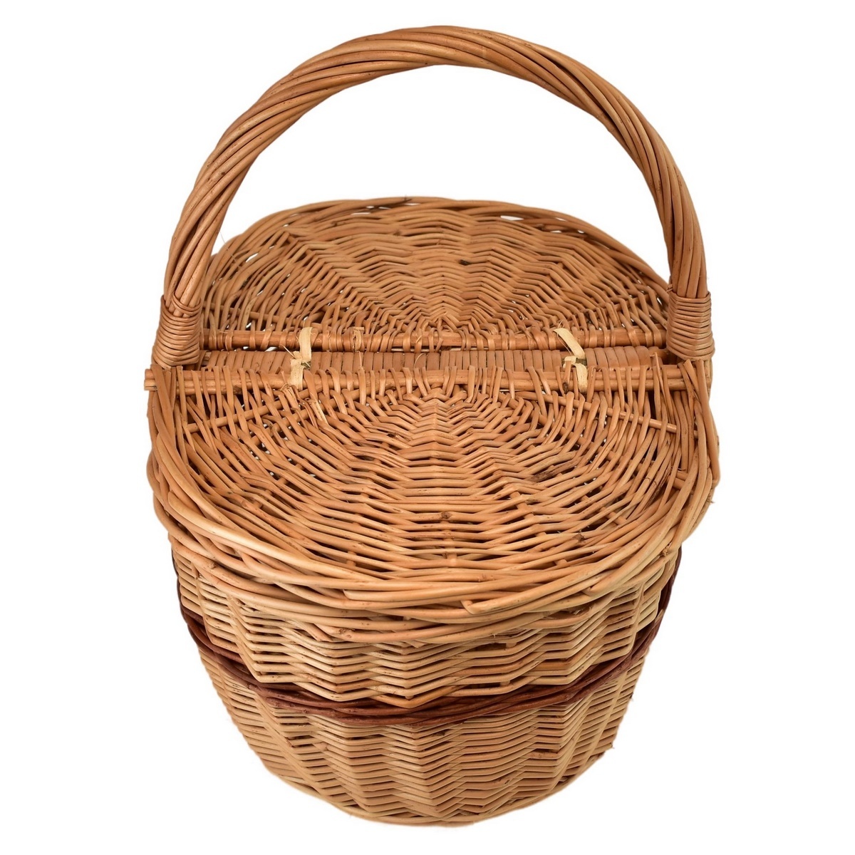 Skvelý doplnok pre každého milovníka prírody a piknikov. Tento piknikový kôš nie je len ideálny pre pikniky, ale aj pre výlety do lesa na zber húb. Kôš je ručne pletený z kvalitného prírodného prútia, má dve výklopné veká. Výška koša bez ucha je 19 cm, s uchom 36 cm.