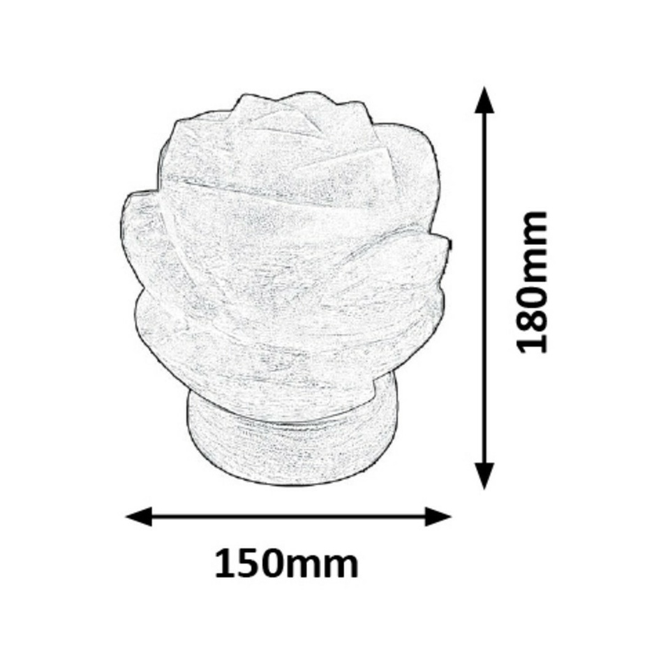 Dekoratívne svietidlo Flores v stredomorskom štýle nie je len útulným zdrojom svetla, ale bude to aj sofistikovanou výzdobou vašej spálne či obývačky. Kvetinovú soľnú lampu je možné umiestniť vedľa postele, na nočný stolík alebo na nízky stolík v obývacej izbe. Jeho diskrétne svetlo má upokojujúci účinok pred spaním či relaxáciou po práci.Svietidlo Flores sa vyrába v oranžovej farbe s okrúhlou, hnedou dekoratívnou základňou a dodáva sa s ďalším zdrojom svetla 15 W, závit typu: E14. Svetelný tok svetelného zdroja je 90 lúmenov, jeho životnosť je 1 000 hodín a jeho farebná teplota je 2700 K. Soľná lampa vyžaruje teplé biele svetlo a pracuje s káblovým vypínačom.