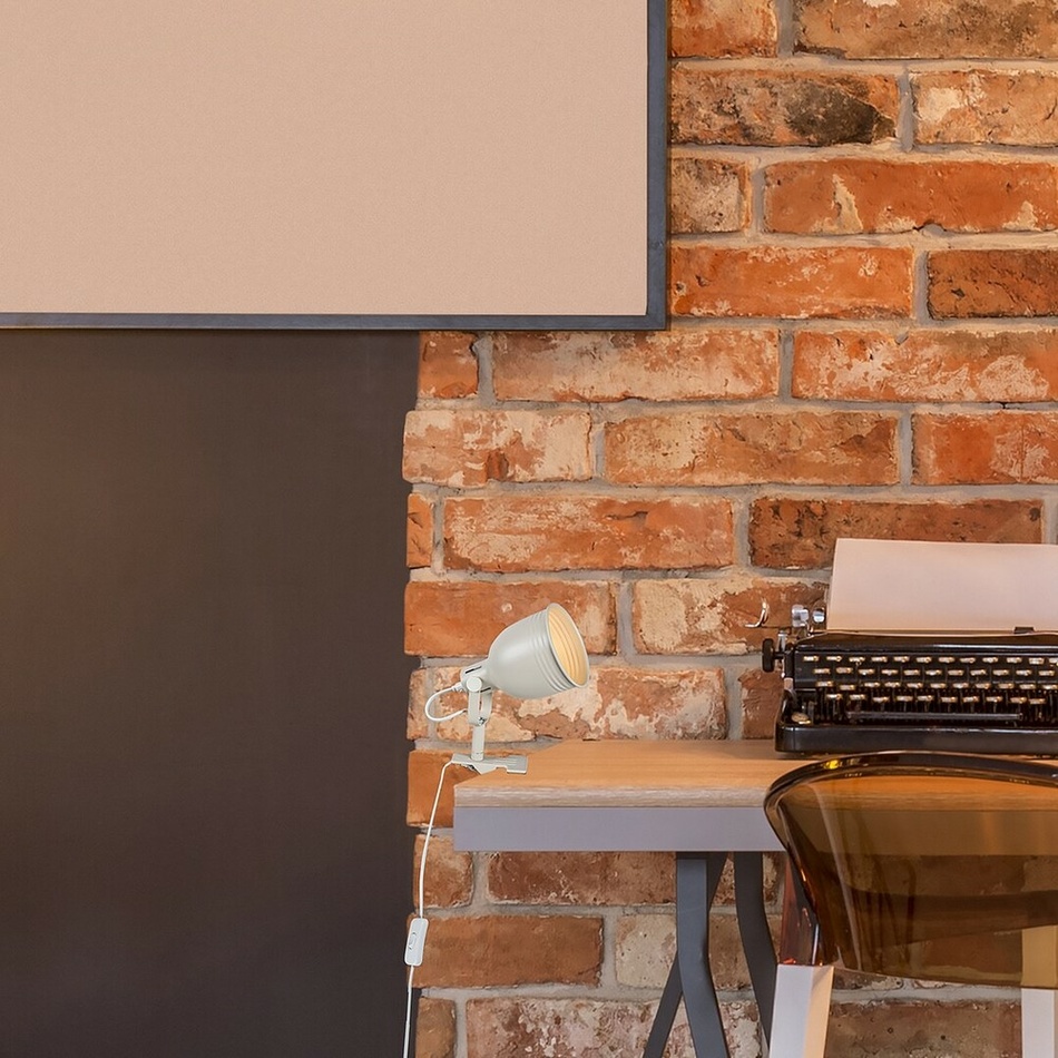 Pripínacie svietidlo Flint, predstavujúce industriálny štýl, bude praktickou voľbou do vašej spálne alebo pracovne. Toto celokovové svietidlo s ohybnou hlavou svietidla a tienidlom v tvare zvonu je v klasickom béžovom prevedení. Tento model je možné umiestniť podľa vašich potrieb, pomocou pevnej spony je možné ho upevniť na policu alebo stôl.Svietidlo Flint je možné použiť s jednou žiarovkou s výkonom až 25 W. Typ pätice je E14. Na prácu alebo čítanie odporúčame žiarovku vyžarujúcu prirodzené biele svetlo. Ovládanie je pomocou šnúrového spínača. Tento model je dodávaný bez svetelného zdroja.