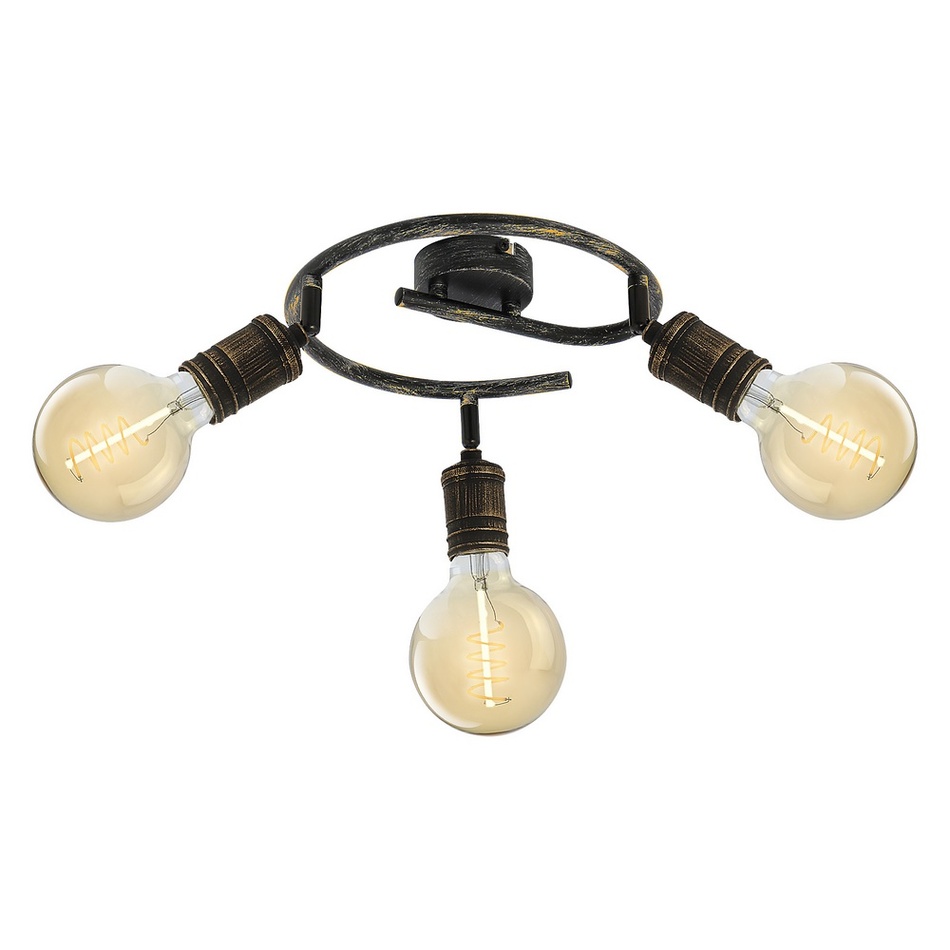 Bodové svietidlo Fidel s 3 žiarovkami v industriálnom štýle môže byť skvelou voľbou do rôznych miestností vášho domova. Ozvláštni a doplní vašu obývaciu izbu, spálňu alebo jedáleň. Starožitné zlaté kovové svietidlo je možné upevniť na stenu pomocou okrúhleho ozdobného podstavca. 3 hlavy svietidla sú umiestnené na špirálovej nosnej tyči, ktorá je pripevnená k dekoratívnej základni.Svietidlo Fidel je možné použiť s 3 žiarovkami, každá s výkonom do 25 W. Typ pätice je E27. Žiarovky sú voľne stojace. Pre toto svietidlo si môžete zvoliť teplé alebo prírodné biele zdroje svetla. Vďaka flexibilným hlavám svietidla môžete svetlo nasmerovať podľa svojich potrieb. Rozmery bodového svietidla Fidel s 3 žiarovkami: priemer 330 mm, inštalačný priemer 80 mm. Tento model je dodávaný bez svetelných zdrojov.