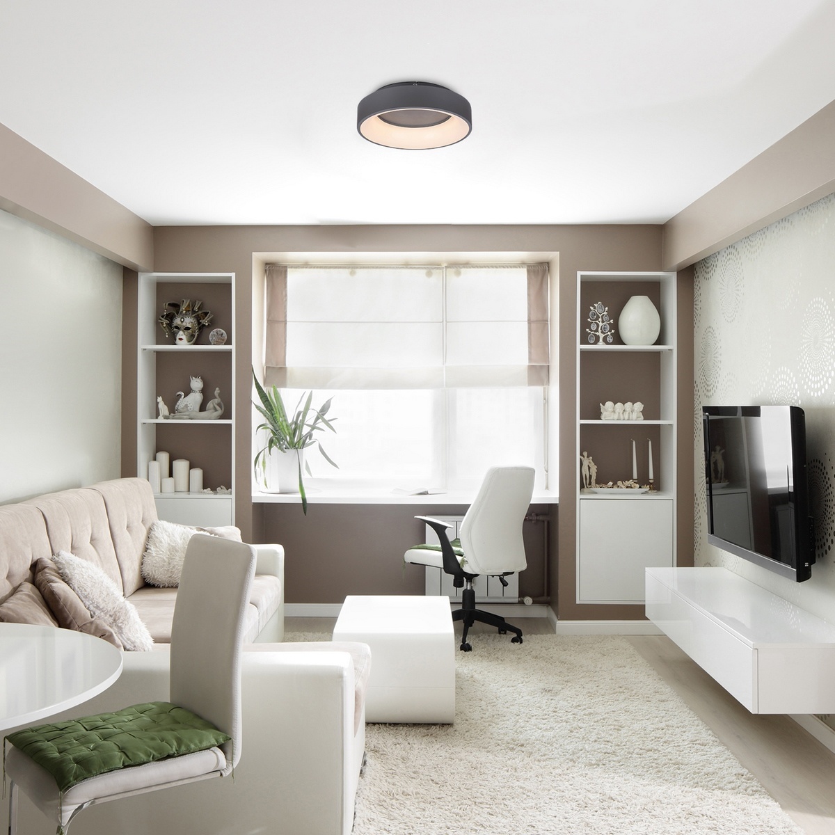 Toto minimalistické svietidlo bude skvelou voľbou pre vašu obývaciu izbu, spálňu alebo pracovňu. Vstavaný LED zdroj je nevymeniteľný, ale má veľmi dlhú životnosť, cca 20 000 hodín. Svietidlo je stmievateľné, jas môžete zmeniť pomocou diaľkového ovládača, rovnako tak sa dá meniť aj teplota, v rozmedzí 3000 – 6000 K. Medzi ďalšie prednosti patrí nočné svetlo a pamäť.Technické parametre: