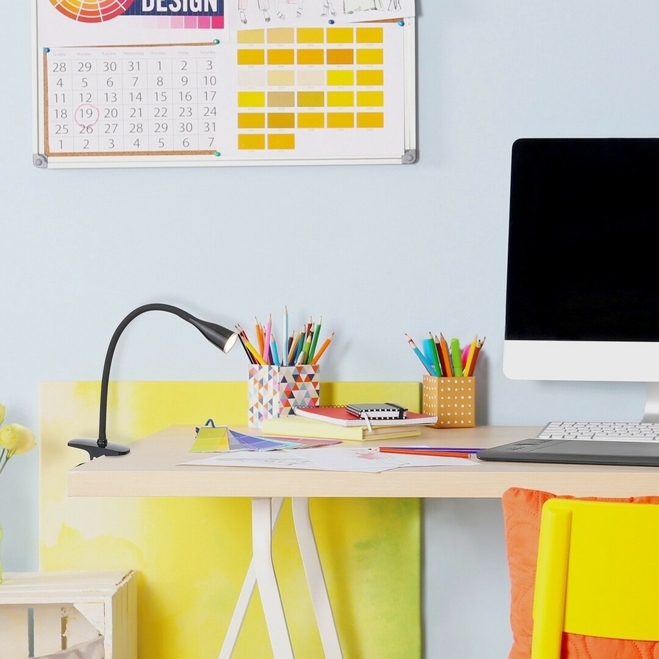 Stolné lampy sa najviac používajú v študovni alebo v detskej izbe pri práci na počítači alebo pri písaní domácich úloh. Funkčnosť a dizajn sa musia navzájom dobre dopĺňať. Táto funkčná štýlová lampa Jeff v čiernom prevedení môže byť použitá s vypínačom na kábli a obsahuje vstavaný, energeticky úsporný LED svetelný zdroj.Spotreba energie zdroja svetla je 4,5 W, svietivosť je 330 lúmenov, jeho farebná teplota je 3000 K a životnosť je 20 000 hodín. Táto praktická lampa je dodávaná s 5-ročnou zárukou.